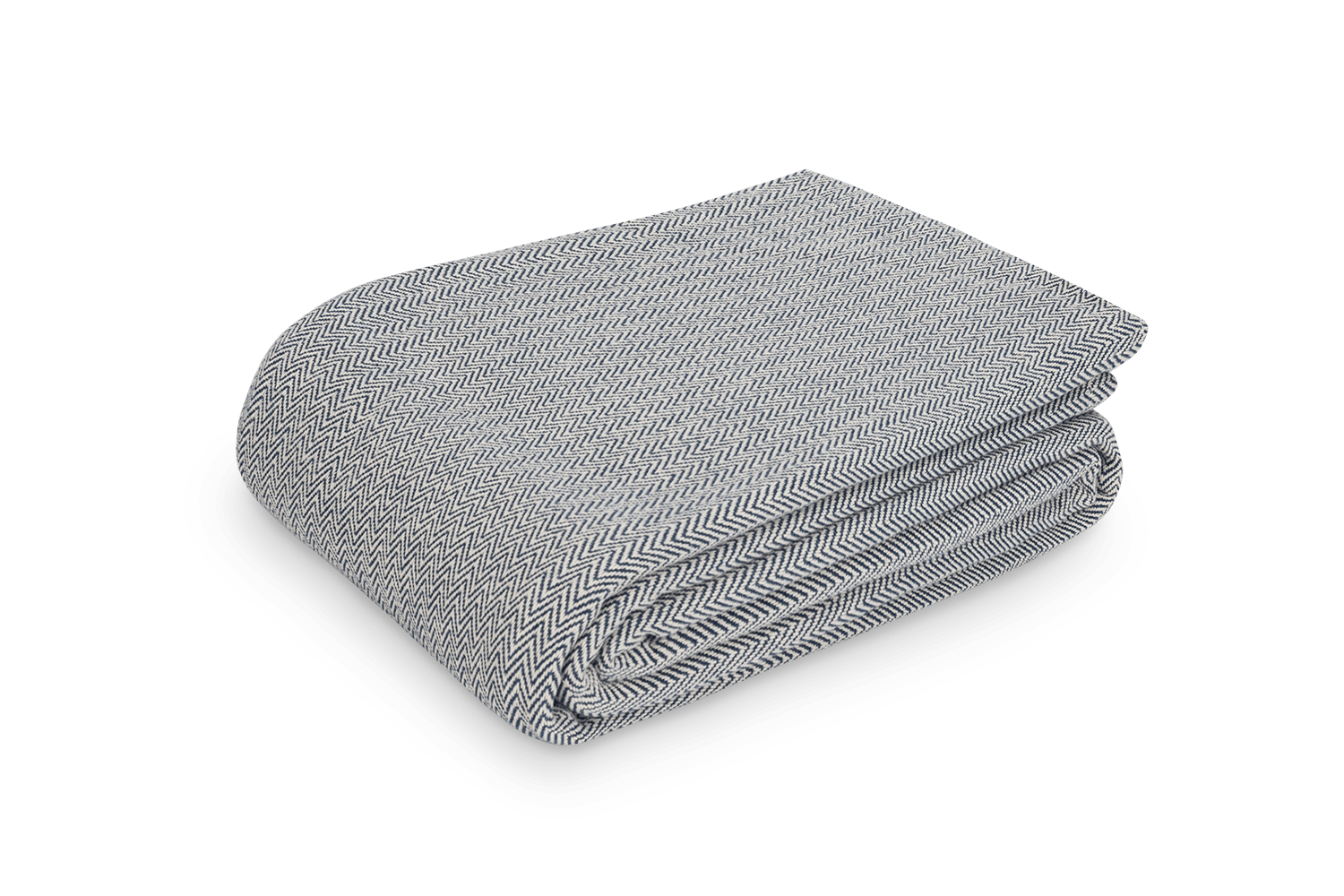 The Avalon Blanket showcases an elegant, understated design featuring a detailed chevron weave and a neatly finished edge, made entirely from premium cotton. Its subtle tonal shades rest on a gentle off-white foundation, bordered by a one-inch hem. With its silky texture and adaptable weight, Avalon ensures comfort throughout the seasons, perfect for layering under a duvet or elegantly displayed at the foot of your bed.