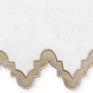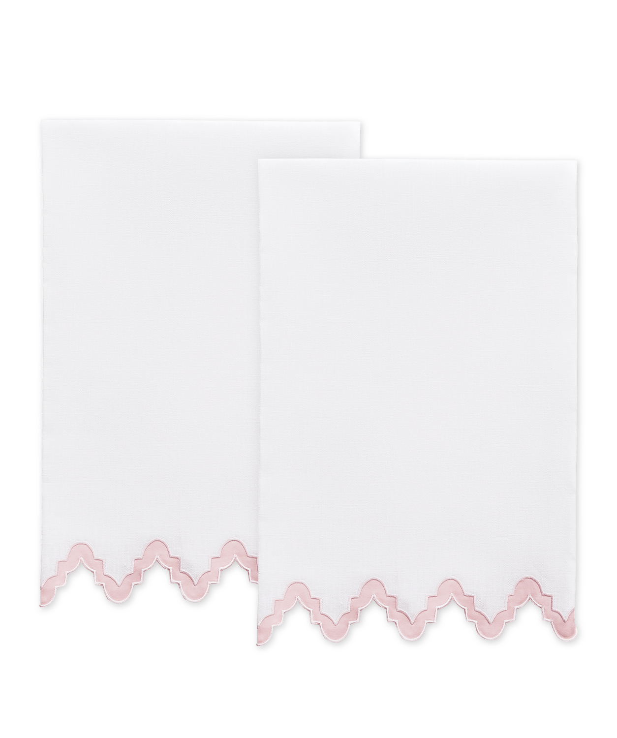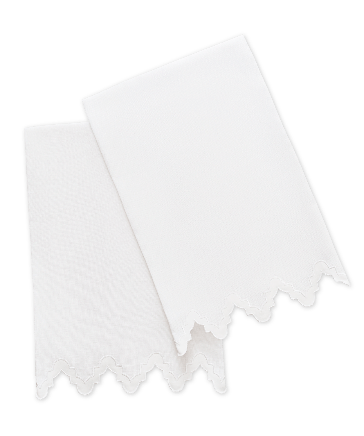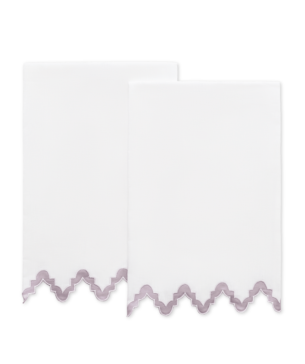 Drawing from the graceful aesthetics of Palm Beach's most coveted destinations, the Aziza guest towels present an exquisite arch trim rendered in Nocturne sateen. This distinctive detail captures the architectural elegance of high-end boutique facades, delivering a touch of refined sophistication to your guest bath.