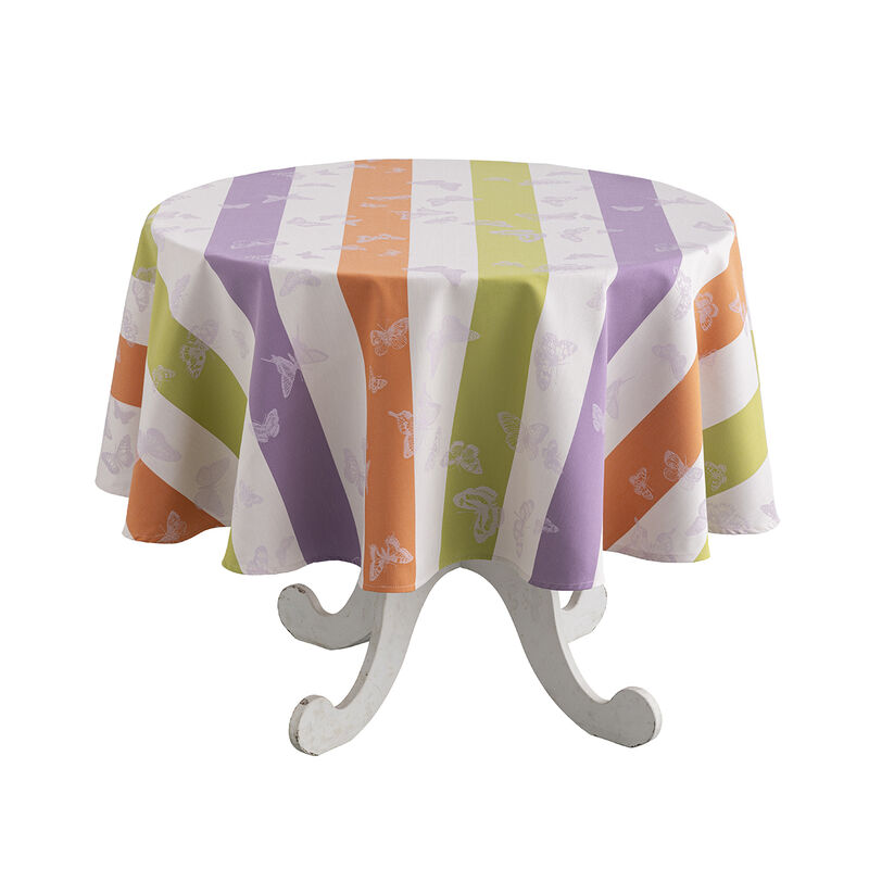Succumb to the magic of a fairytale moment in the heart of an enchanted garden, where butterflies twirl gracefully, instilling a sense of tranquility. These polychrome striped tablecloths invite you to be daring.