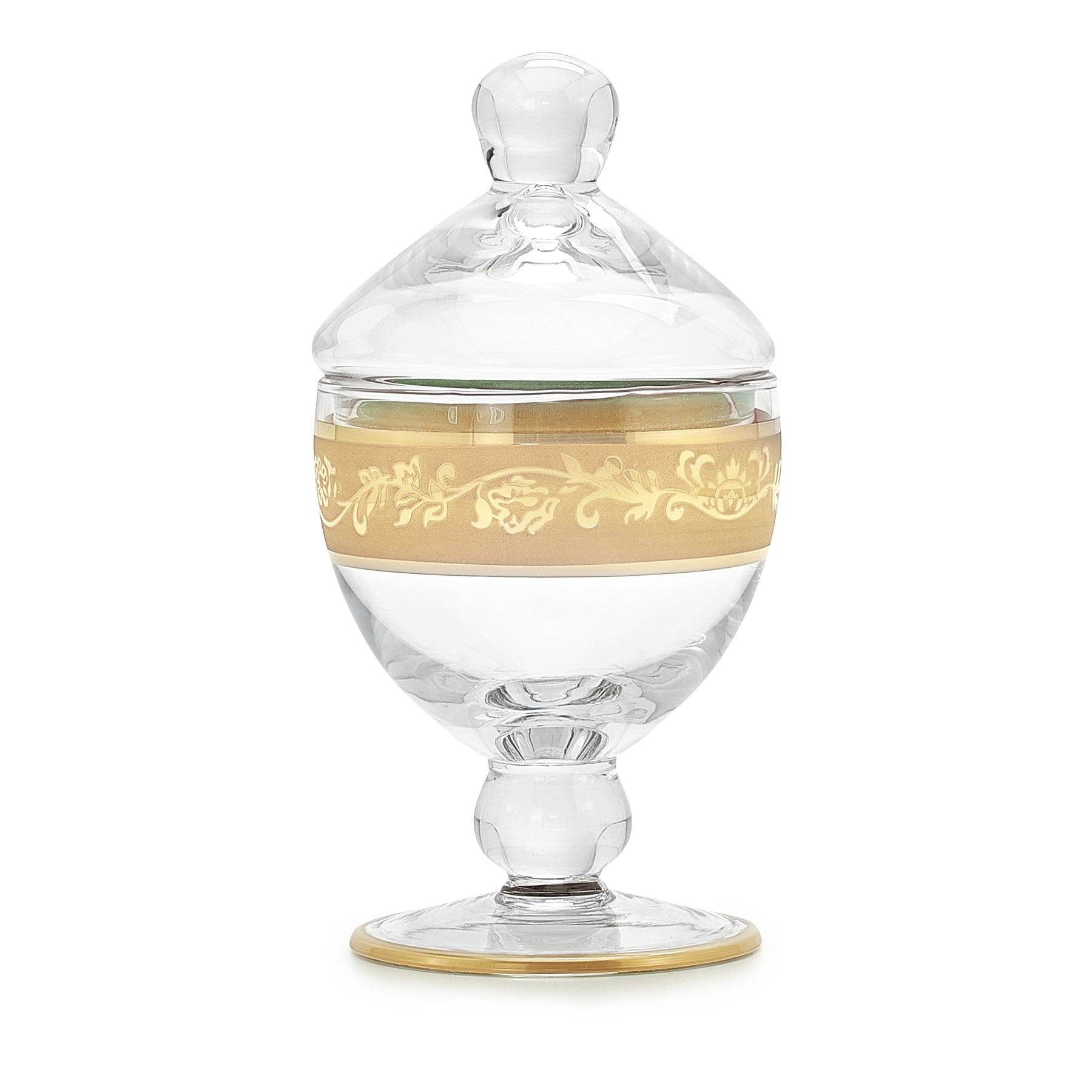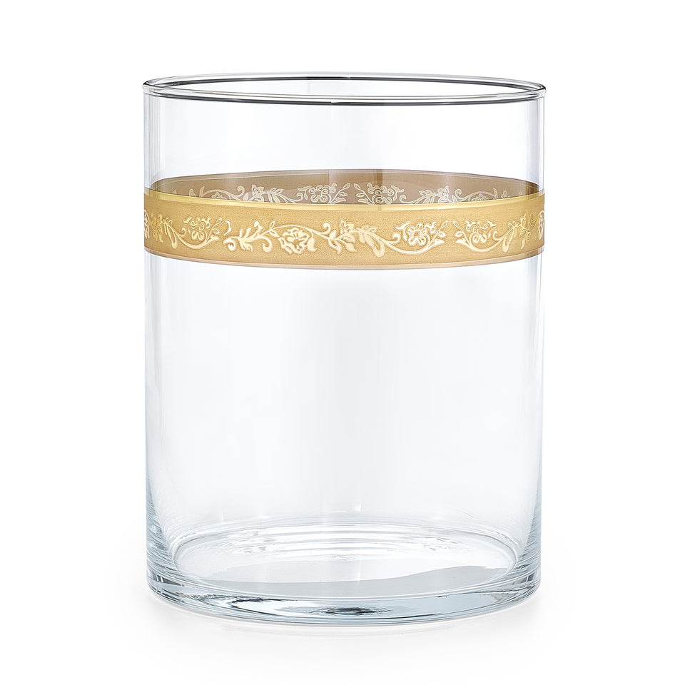 Opulent, embellished goblets has graced the world's finest tables for centuries. We continue that tradition with these elegant bath accessories. Each piece is delicately etched with garlands and overlaid with 14 karat gold. Made in Italy
