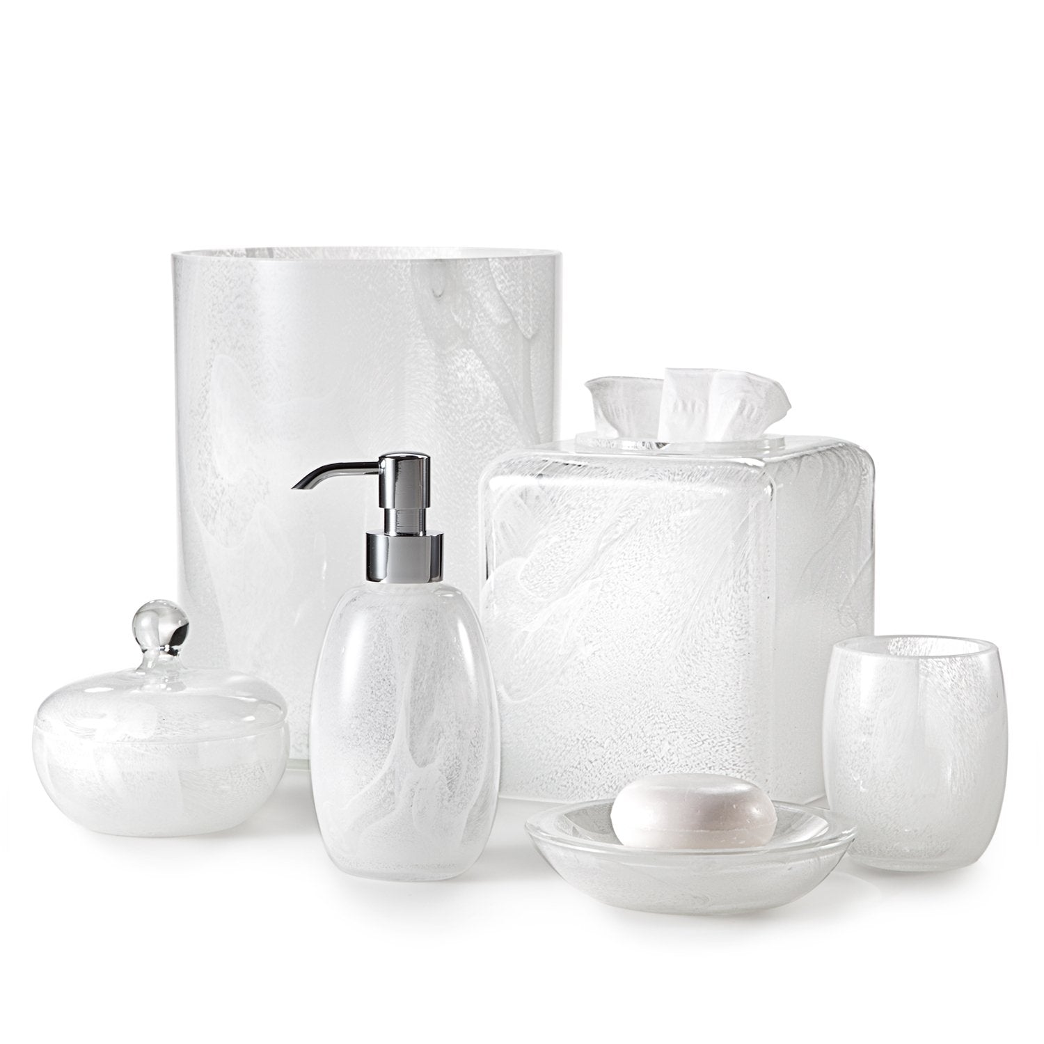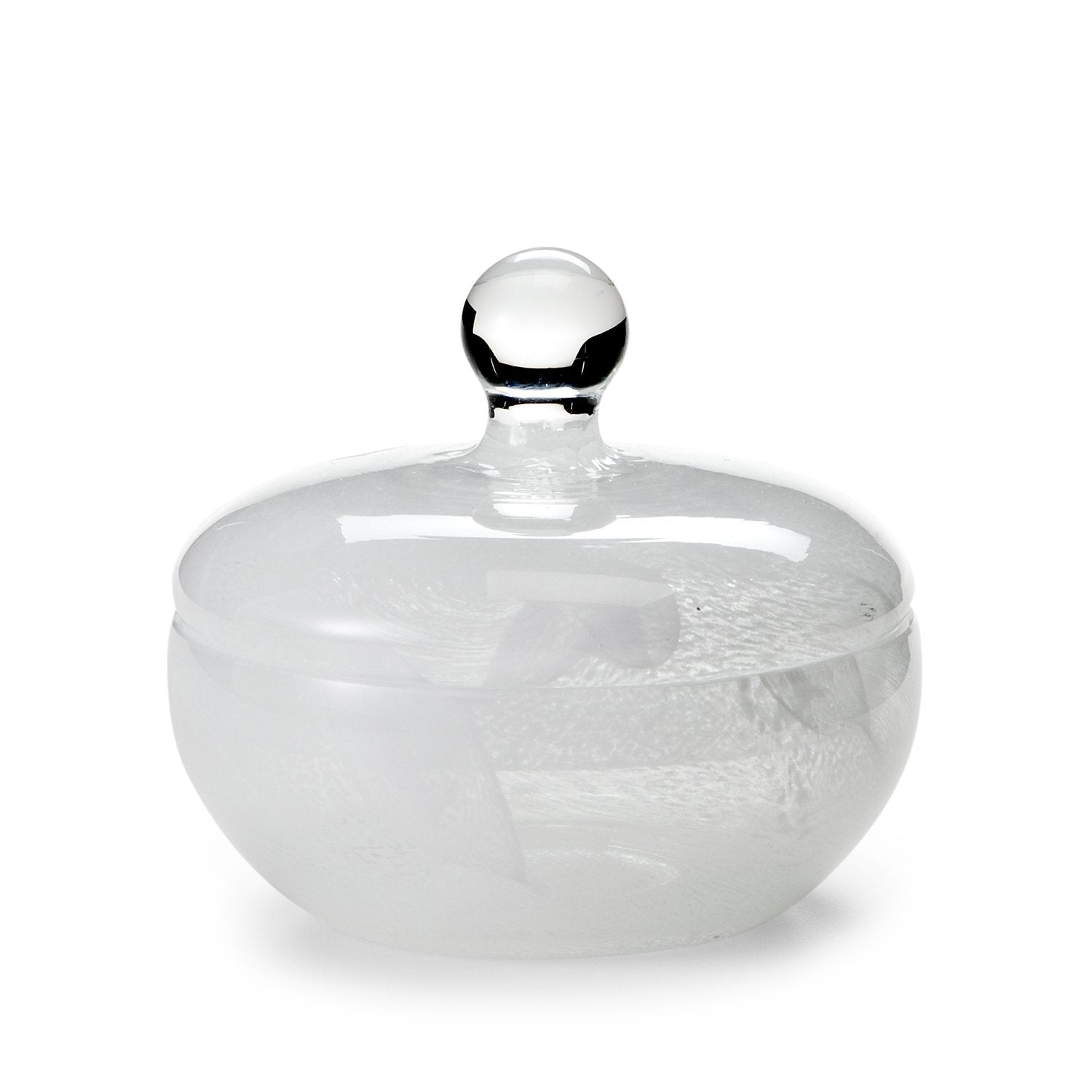 Produced by our glassworks in Florence, this milky white glass has translucent, cloud-like effects. The expertly blown swirls are the unmistakable signature of hand-crafted, mouth-blown glass. Made In Italy.
