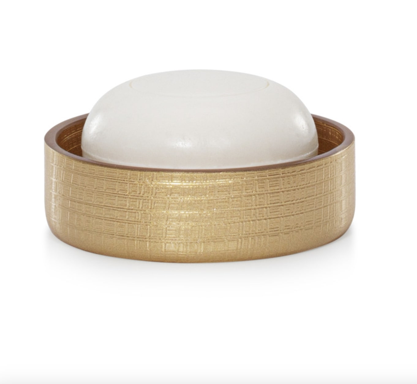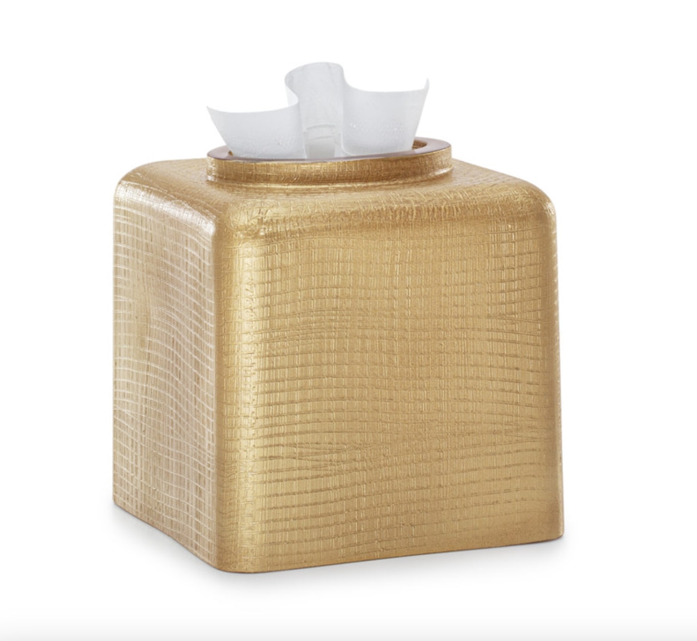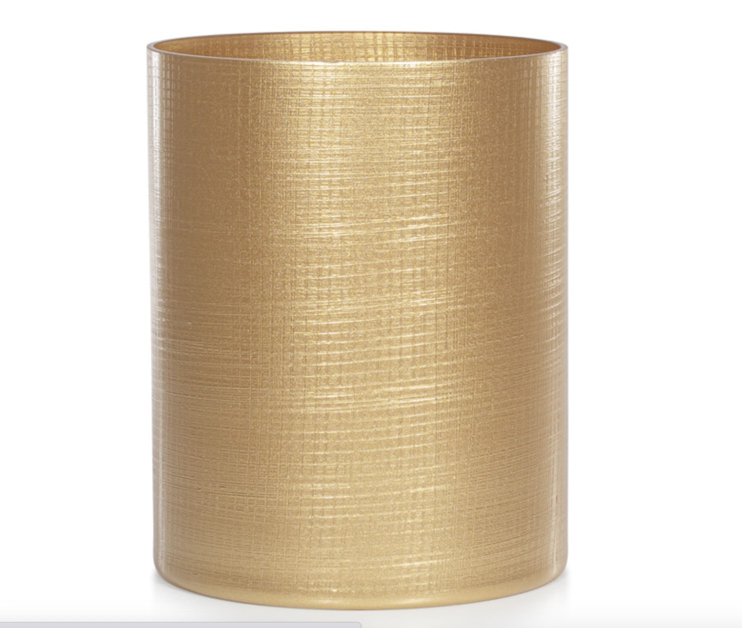 This Cambric Gold Luxury Bath Vanity Set by Labrazel is meticulously hand-crafted by skilled artisans. The set showcases mouth blown glass covered in hand-painted enamel, carefully combed to achieve a delicate "woven" effect.