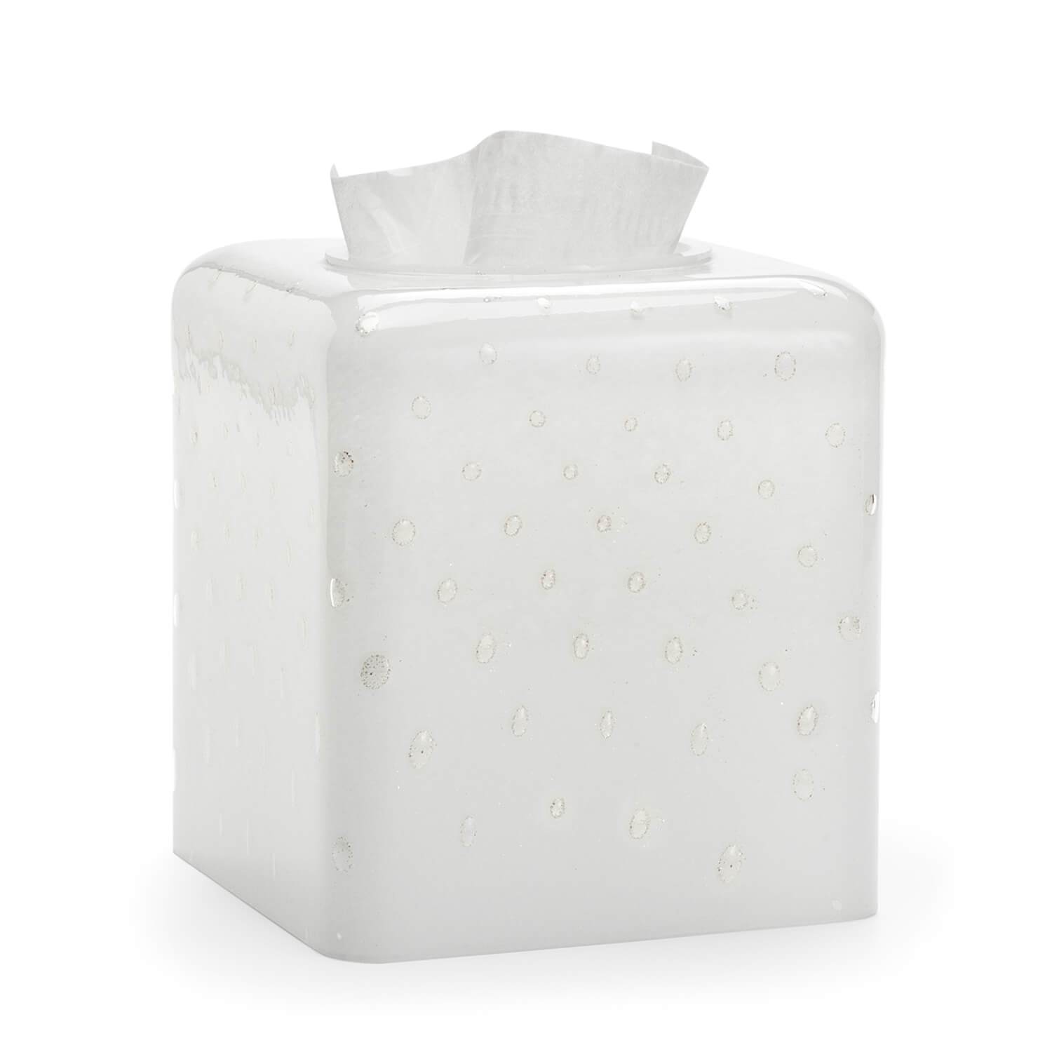 Sparkling fragments of gold and silver leaf are layered on milky-white, mouth-blown glass. The leaf is applied to the molten glass in tiny dabs that expand when each piece is blown. Made In Italy.