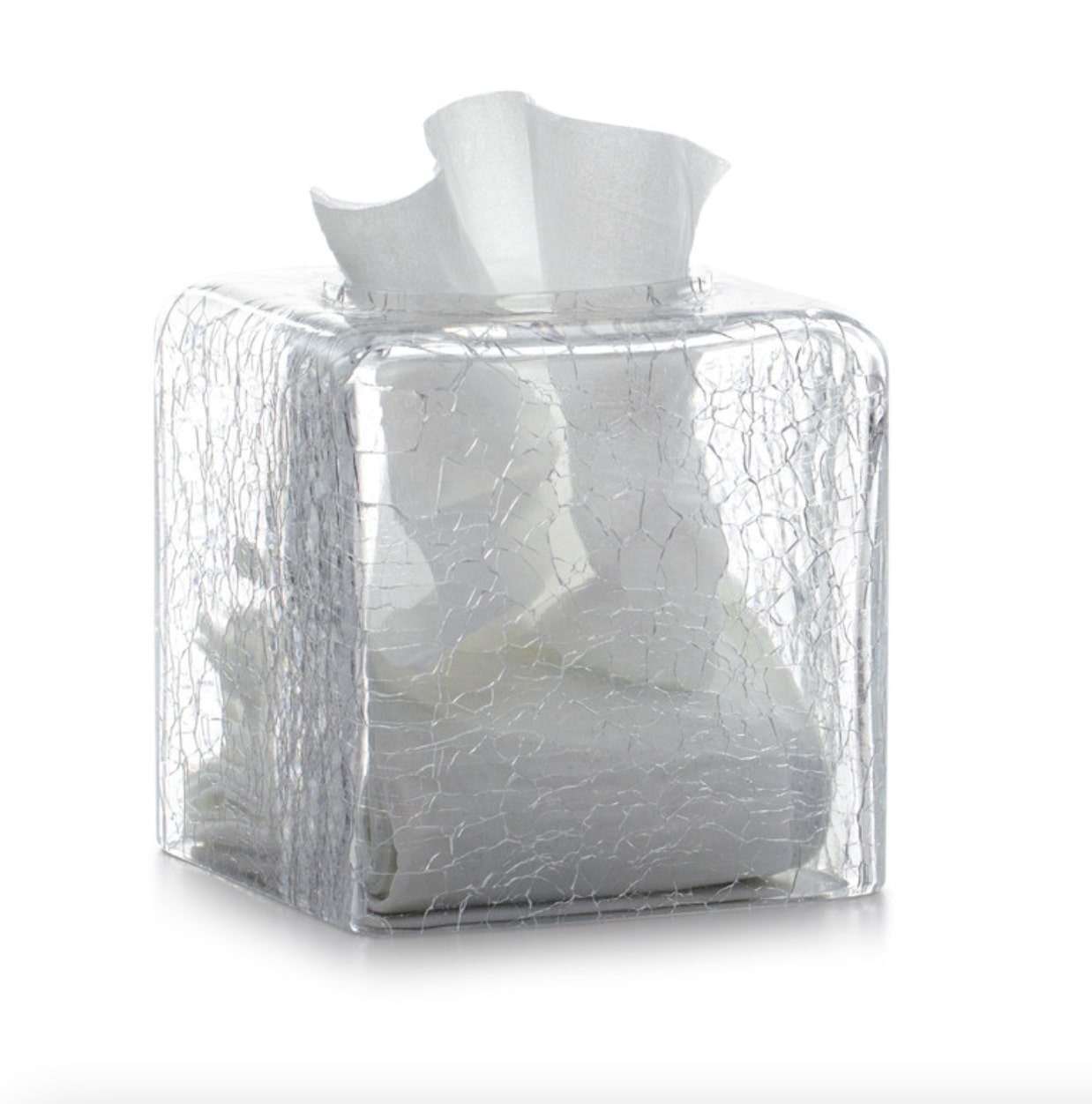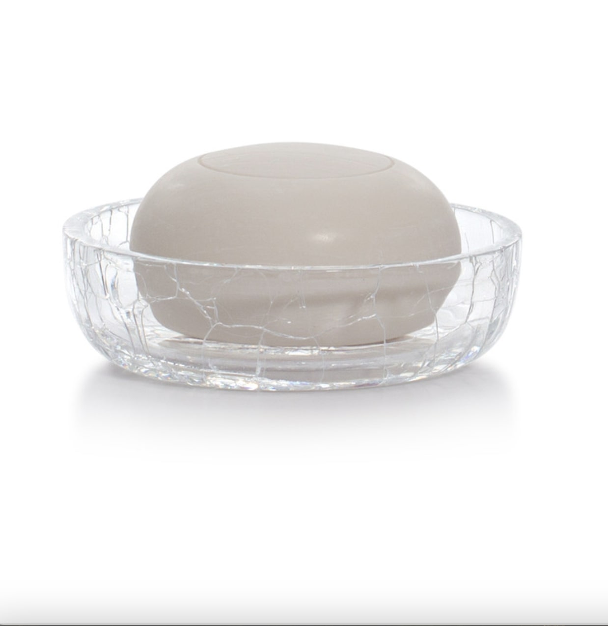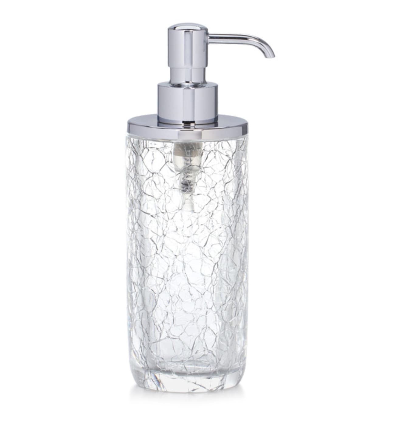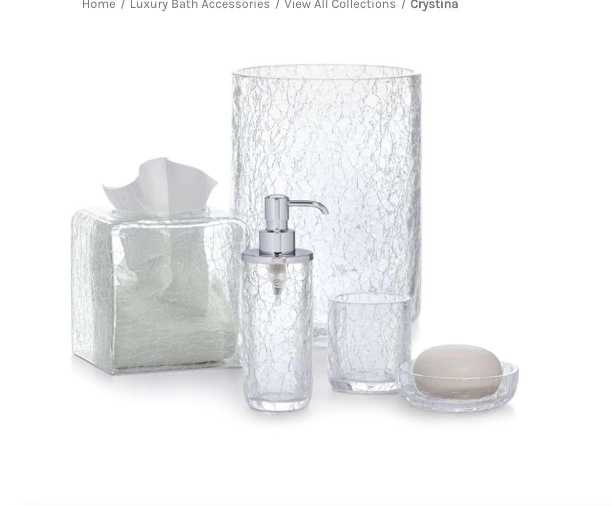 Handcrafted in Italy, this exquisite crystal bath collection showcases artisanal mouth-blown glass with a captivating, crackled surface. Each piece features a luminous outer layer of molten glass that fractures delicately during the cooling process, creating an elegant interplay of light and texture. A refined addition to any bathroom vanity.