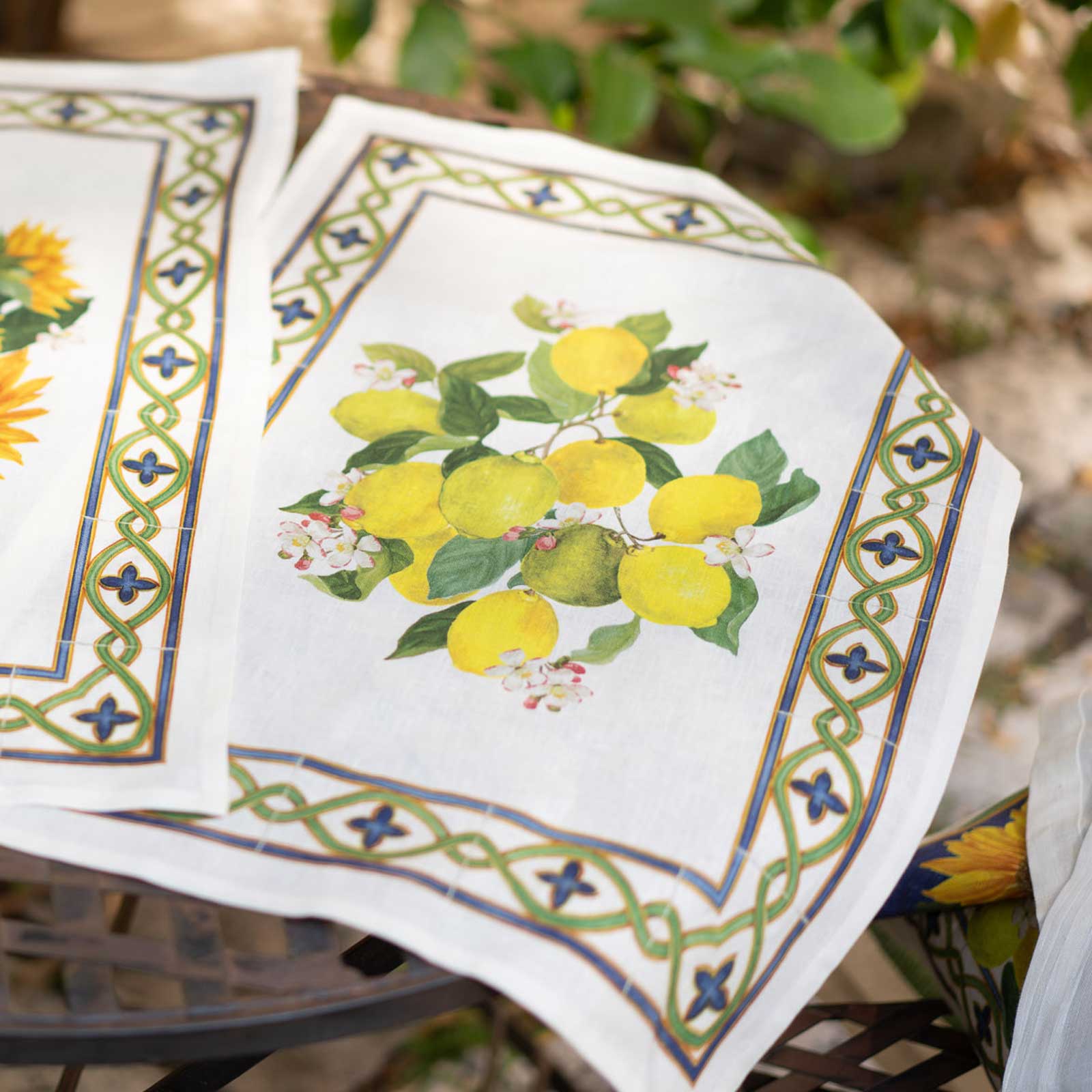 View more informationThe Etruscan Garden Tea Towel by Tessitura Toscana Telerie features a stunning print of vibrant sunflower and lemon blossoms, evoking the charm of a Mediterranean garden. Crafted from high-quality, absorbent fabric, this towel offers both durability and elegance, making it a practical yet beautiful addition to your kitchen. Its sophisticated floral design adds a fresh and uplifting touch to your home décor, transforming everyday tasks into moments of refined pleasure. Perfect for those who appreciate artistry and functionality, the Etruscan Garden Tea Towel brings timeless beauty and exceptional quality to your daily routine.