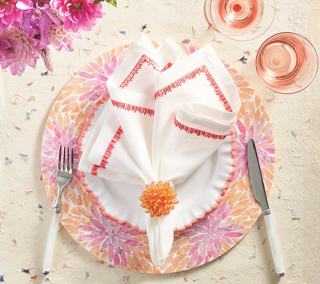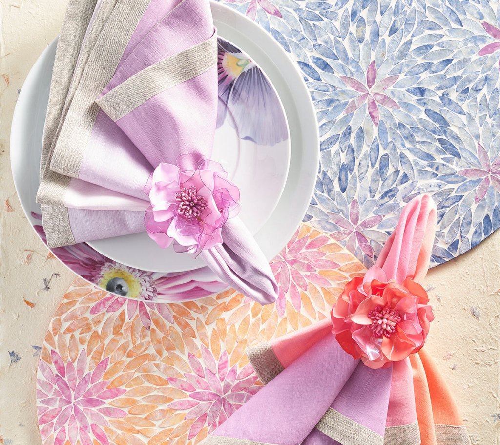View more informationThe round Flora Placemat is made of delicate and lustrous Capiz shells, which are cut in a marque shape and placed carefully to create an ombre effect. The lilac and periwinkle placemat mimics nature‚ these are the most beautiful springtime flowers.