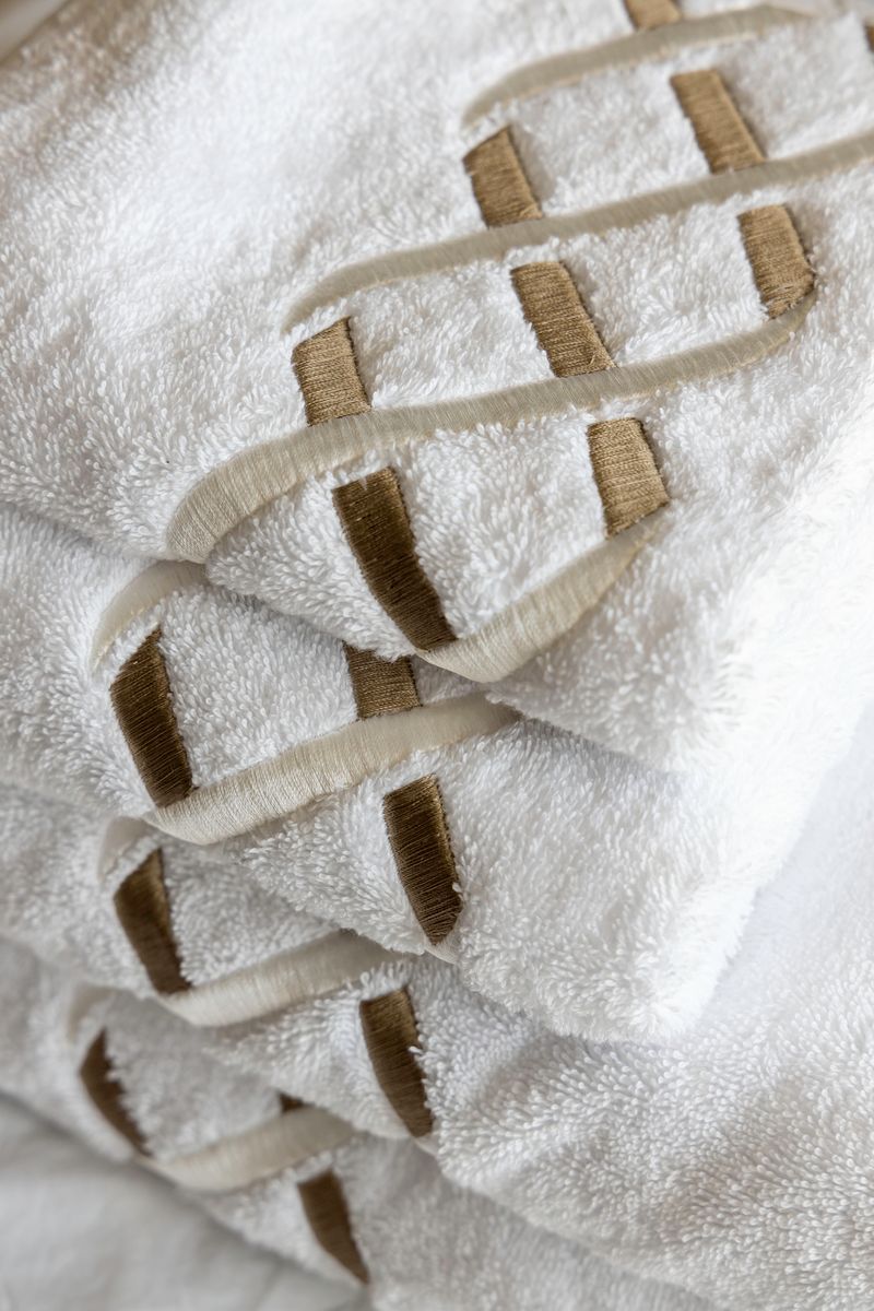 Transform your daily routine with Geometric Towels from Pioneer Linens Signature Collections. These luxurious towels showcase intricate geometric embroidery in a refined palette, accented with subtle white shadow detailing. Perfect for those who appreciate understated sophistication and enduring quality in their home essentials.