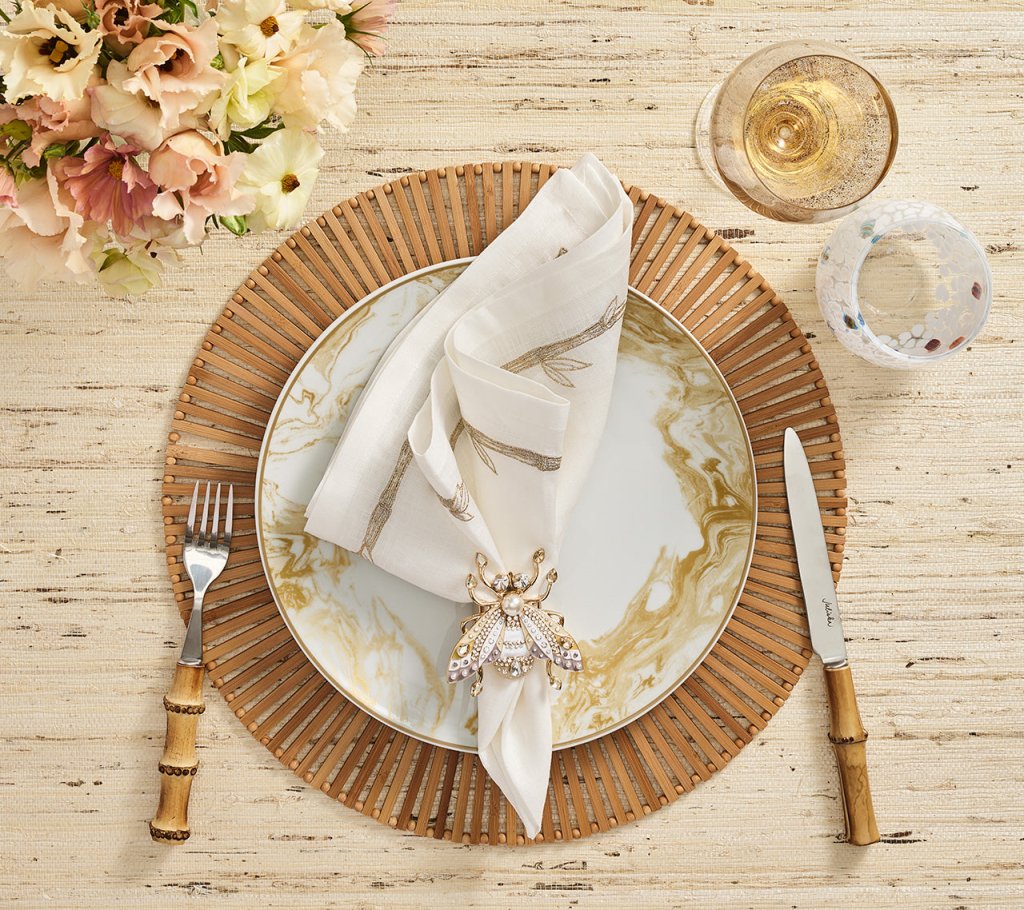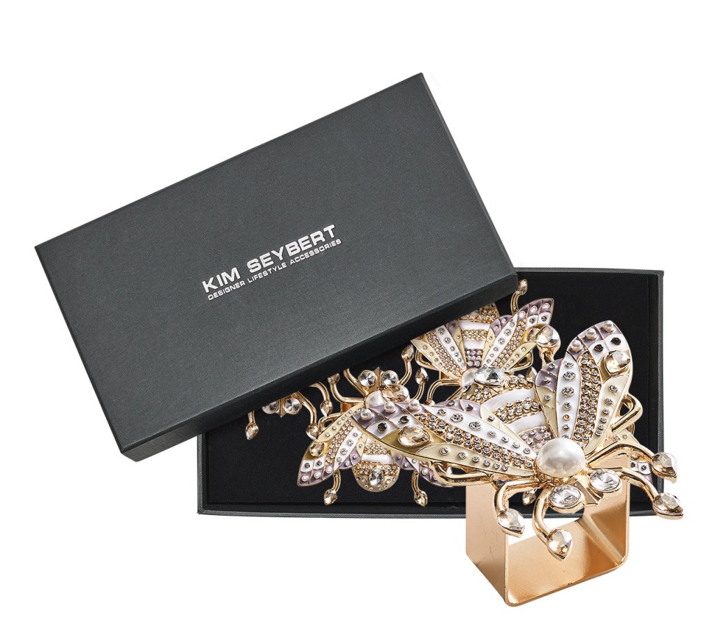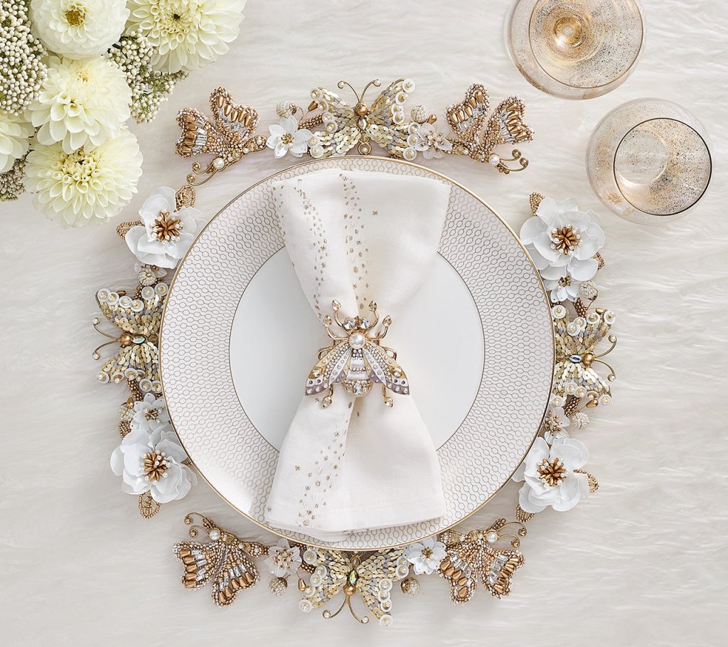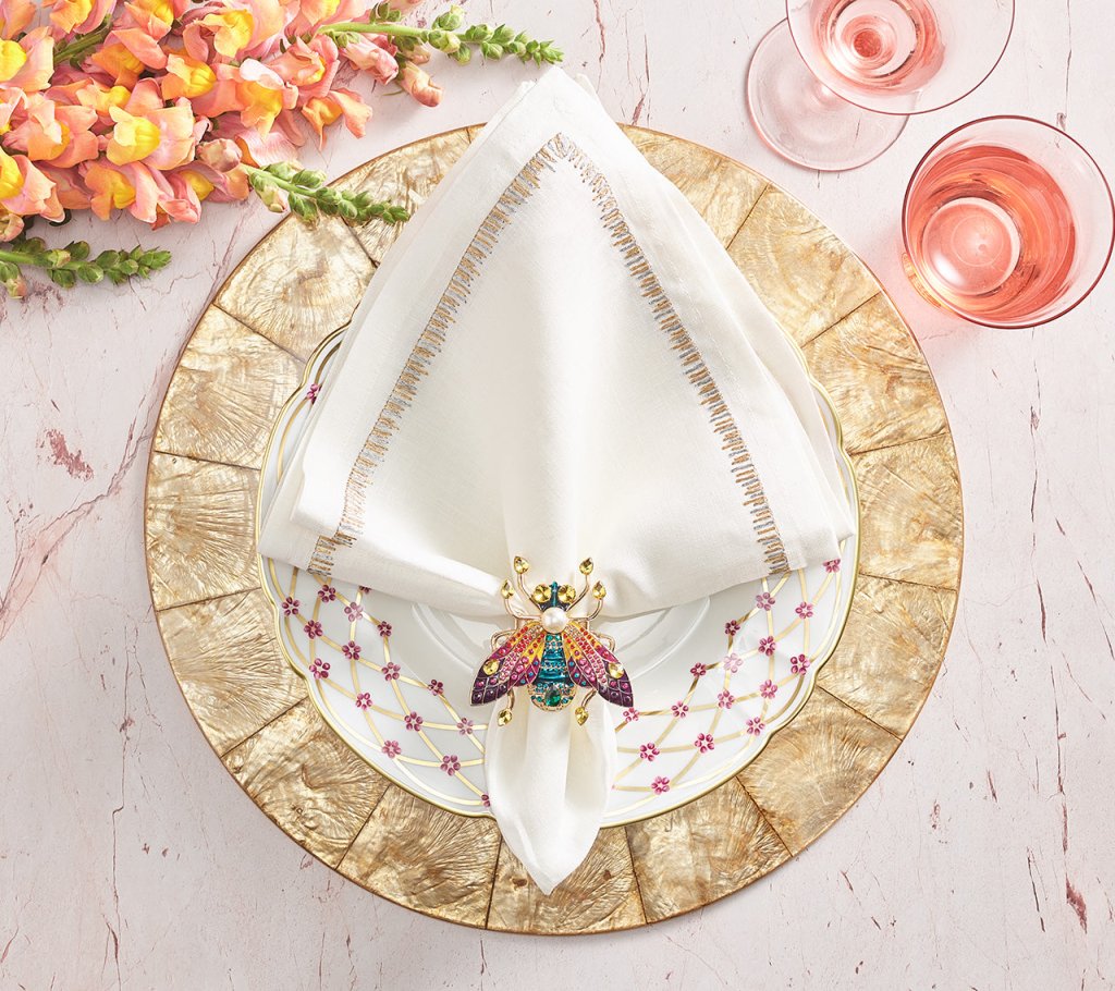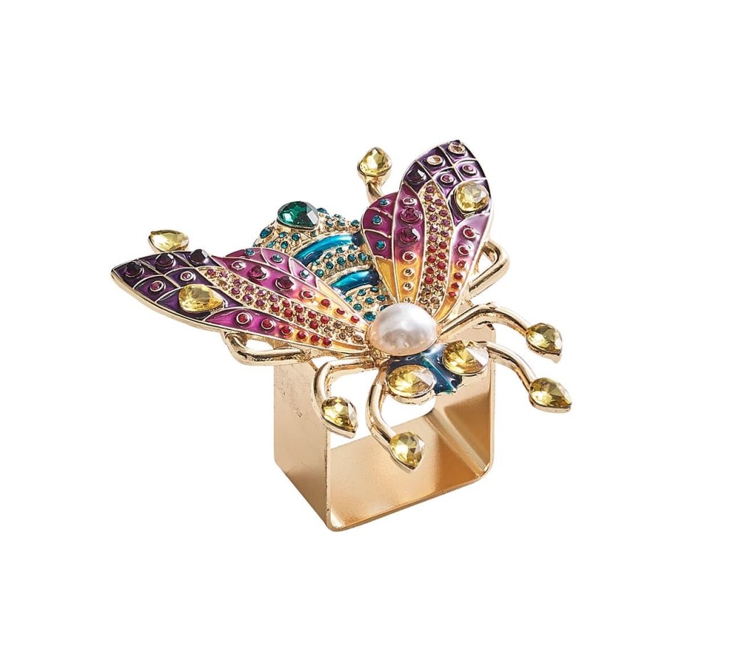 Transform your table setting with this whimsical yet refined napkin ring, where imaginative design meets meticulous craftsmanship. Hand-enameled in rich jewel tones and adorned with shimmering rhinestones and lustrous pearls, this cast metal piece captures the enchantment of a mythical creature. An ideal embellishment for elevated