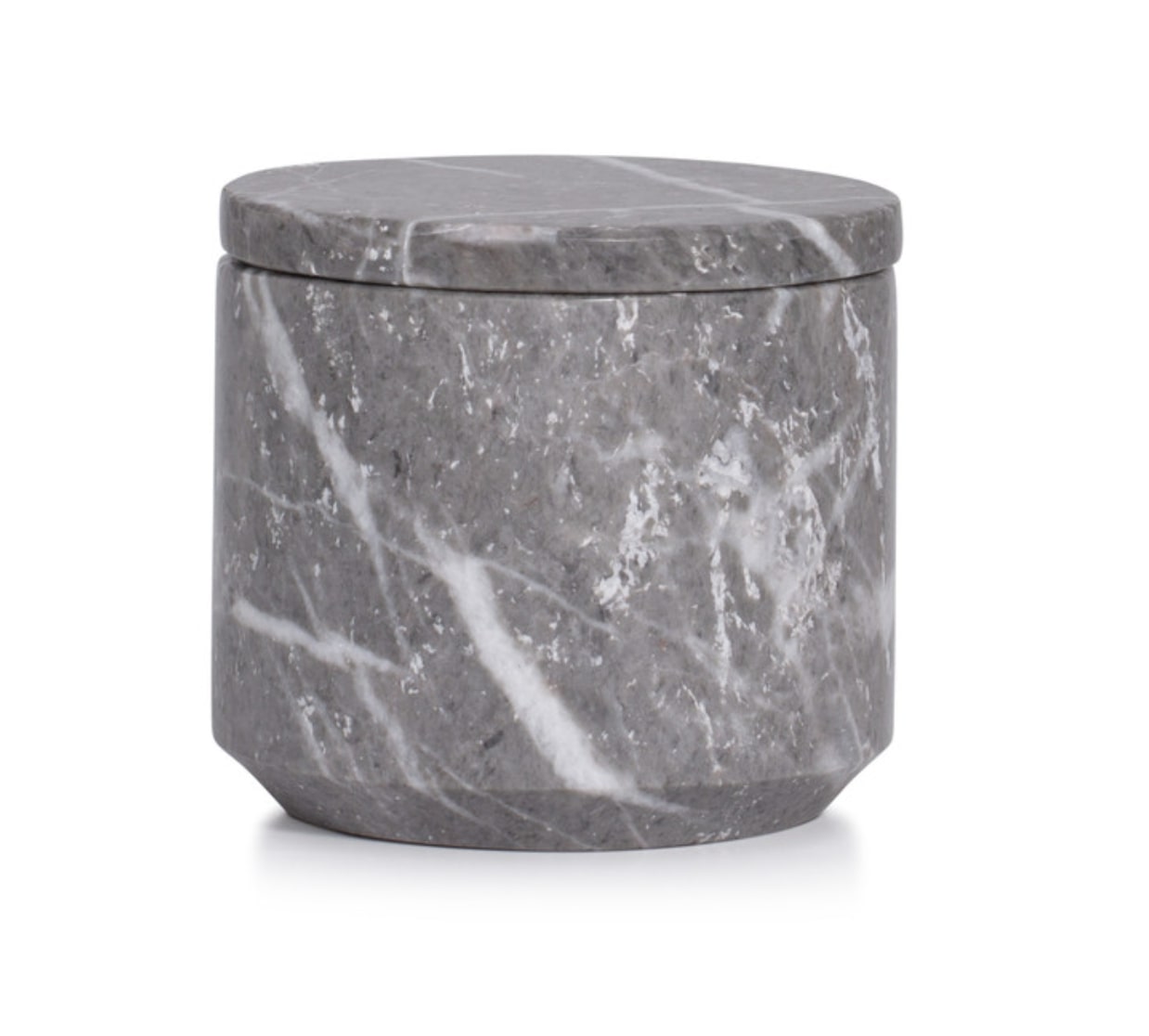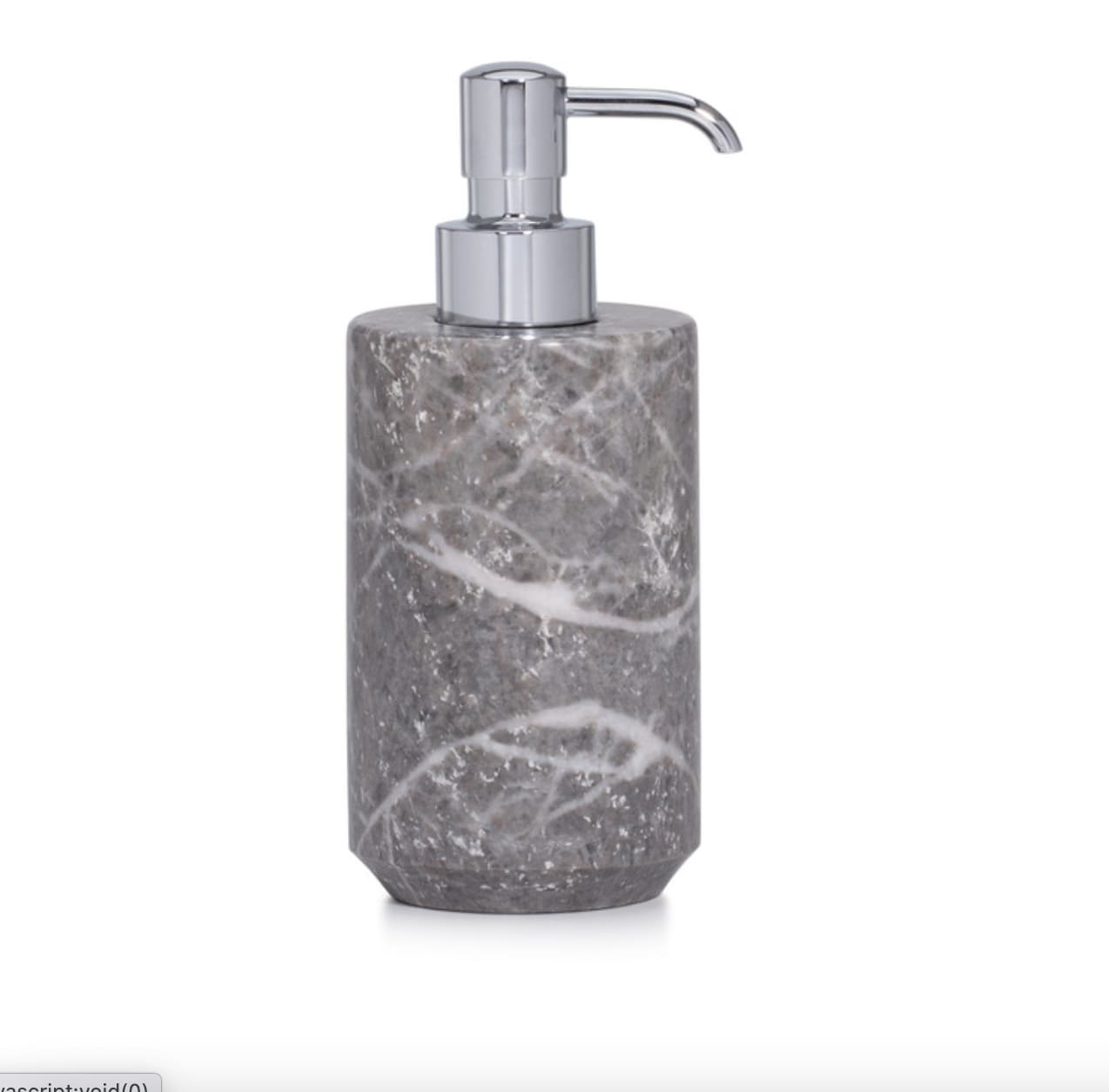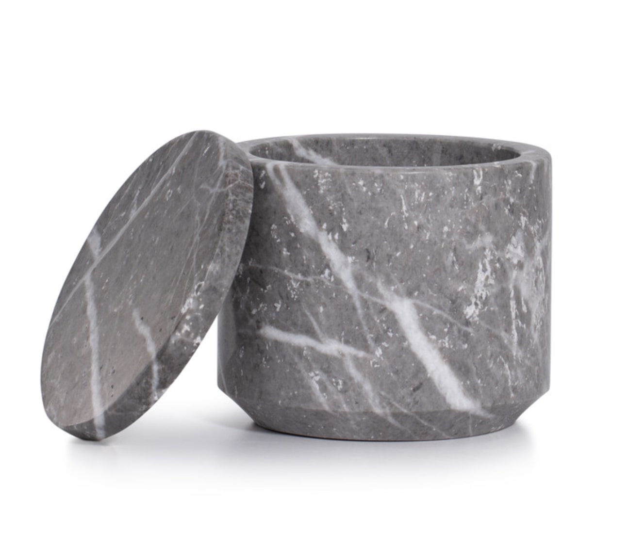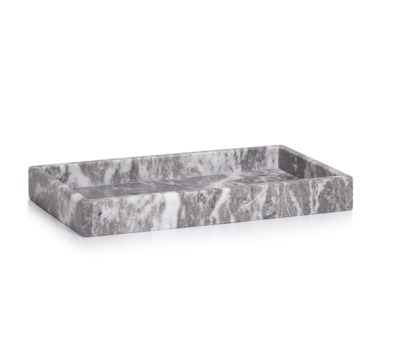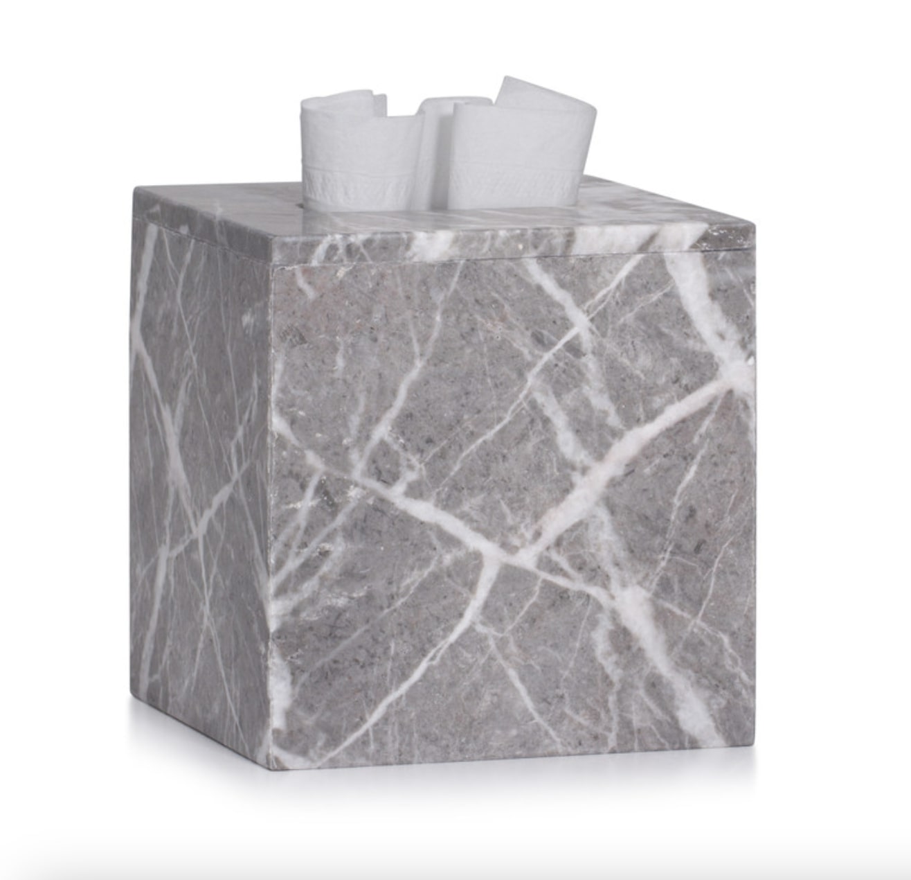 This gray stone bath accessory collection is handcrafted in finely honed marble. Natural colors and patterns make each piece unique.