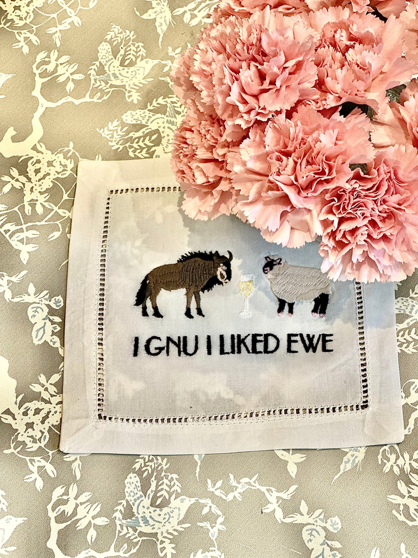 View more informationCelebrate your friendship (and love of the sauce) with our new GNU and Ewe napkin! Available in sets of four or more, each purchase includes a distinctive August Morgan gift box.