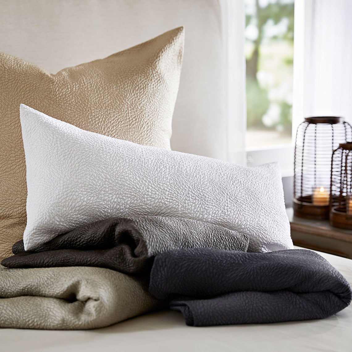 Jazz Duvet Covers and Shams are crafted in Italy, this refined fabric merges silk and cotton in a delicate boutis jacquard weave. It offers the elegance of silk paired with the comfort and practicality of cotton.