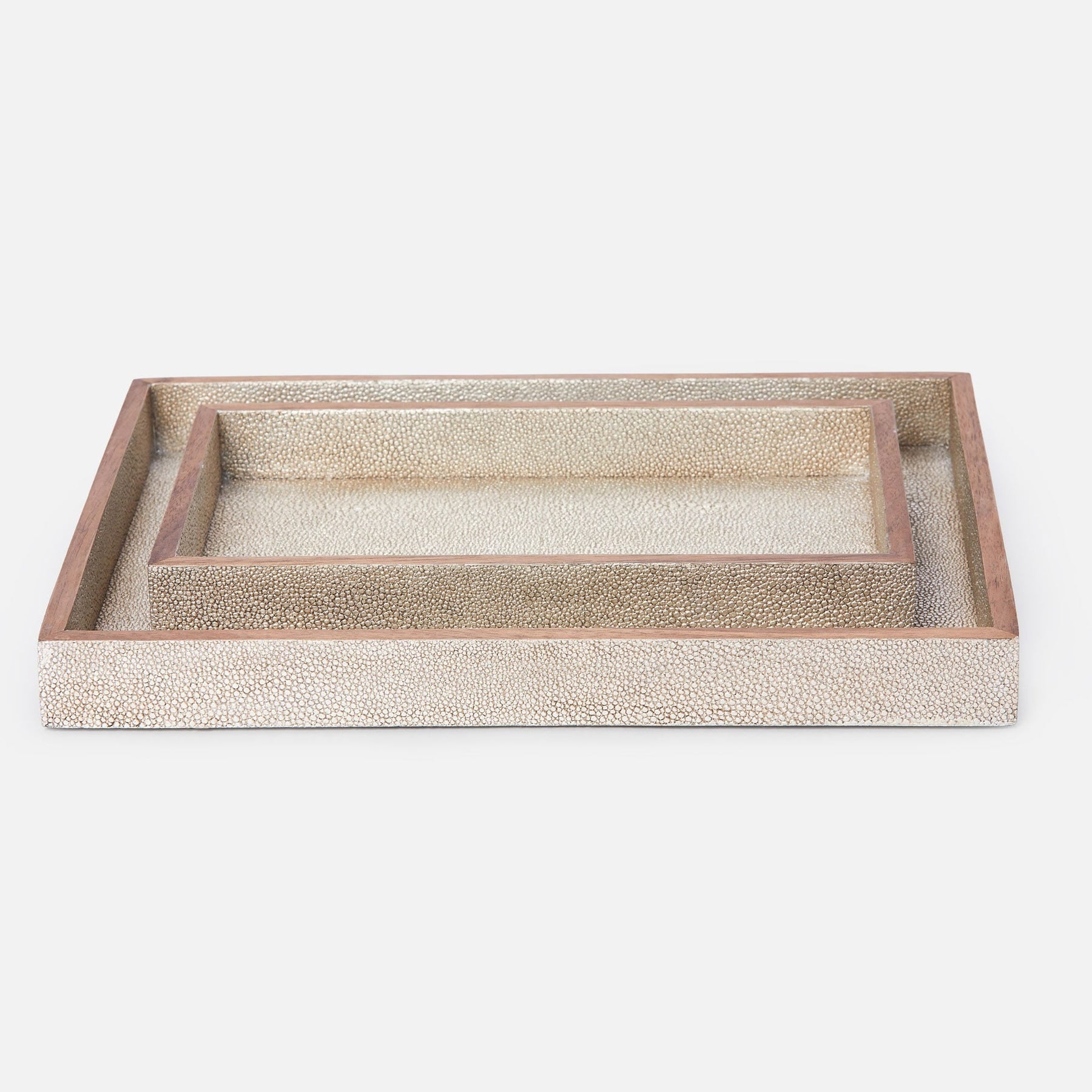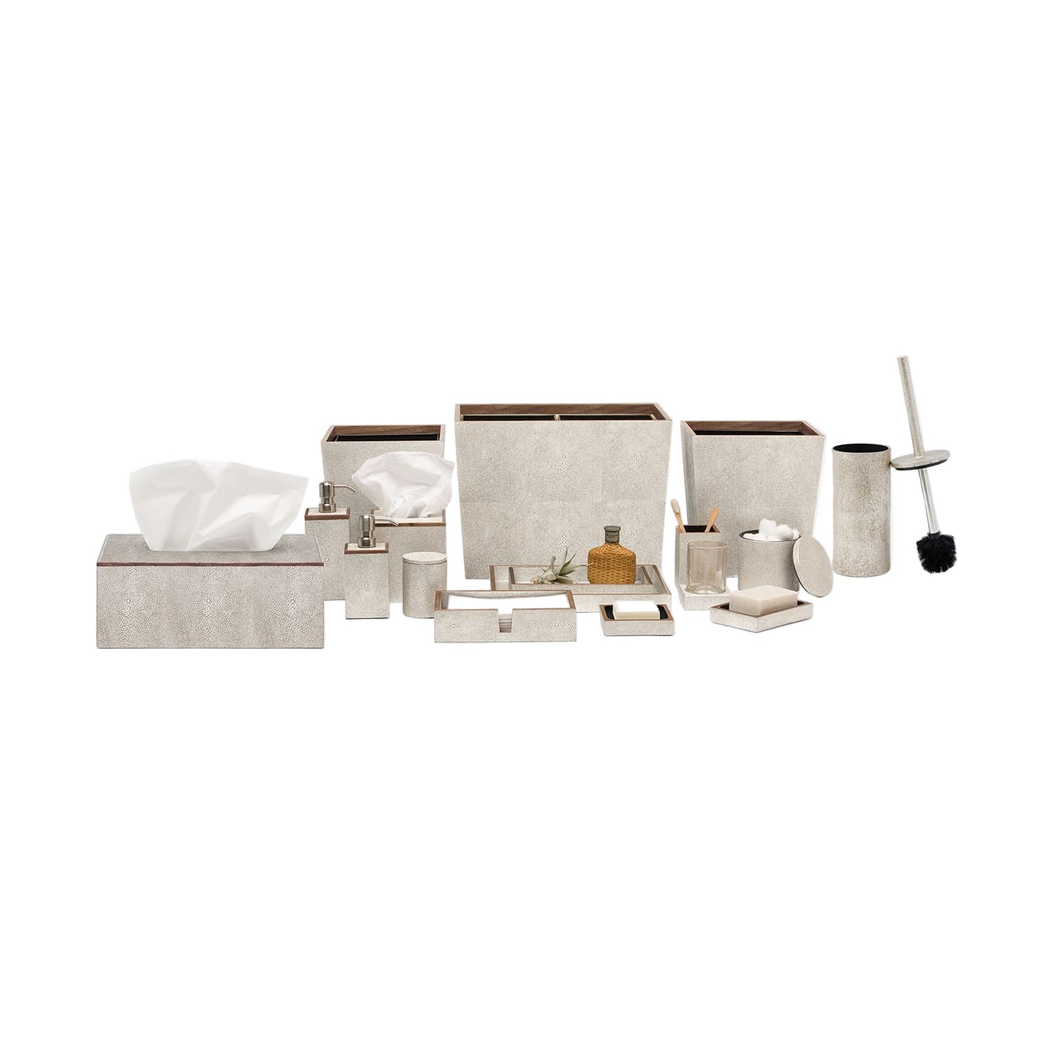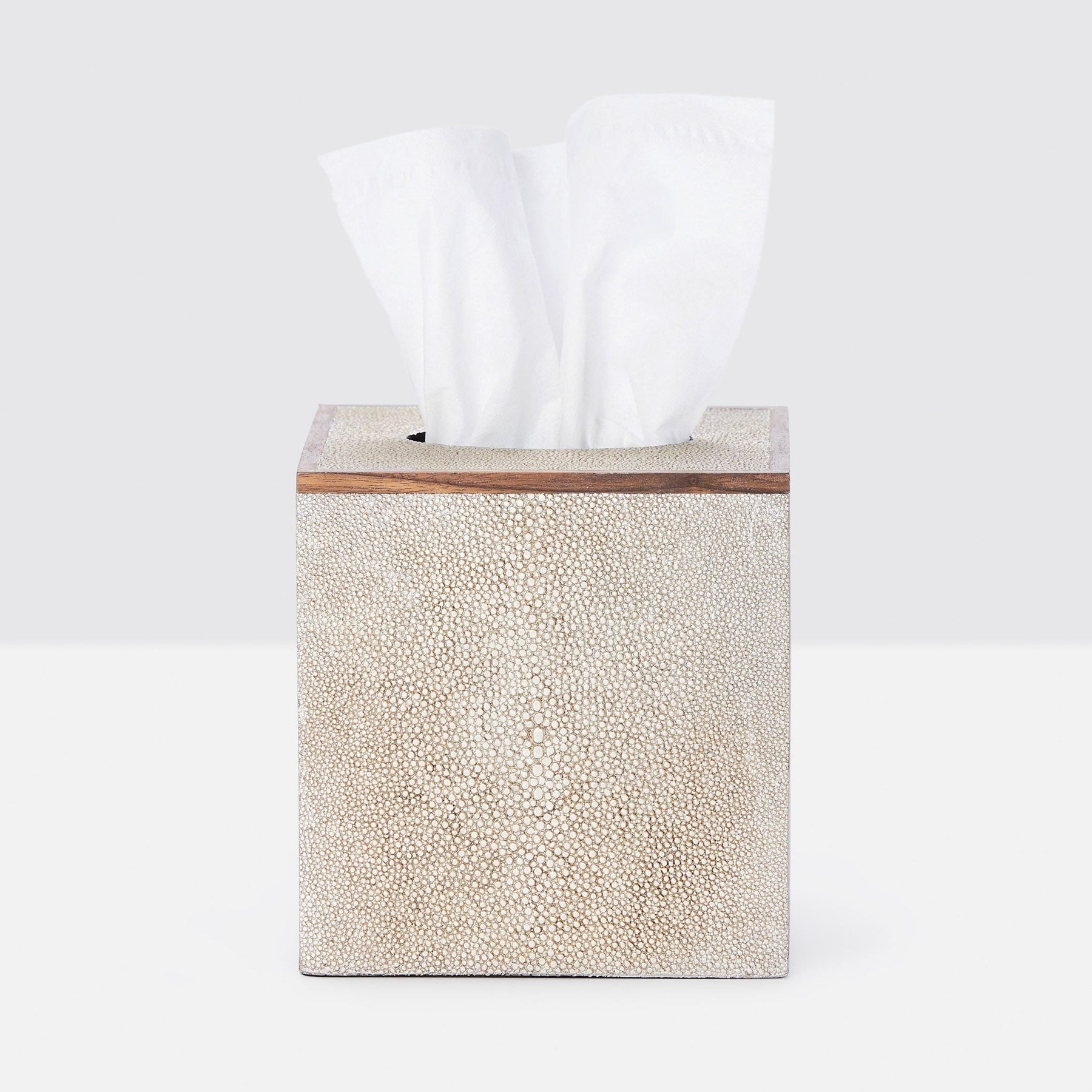 Every piece is crafted to highlight the natural eye pattern inspired by authentic shagreen, and topped with a veneer trim.