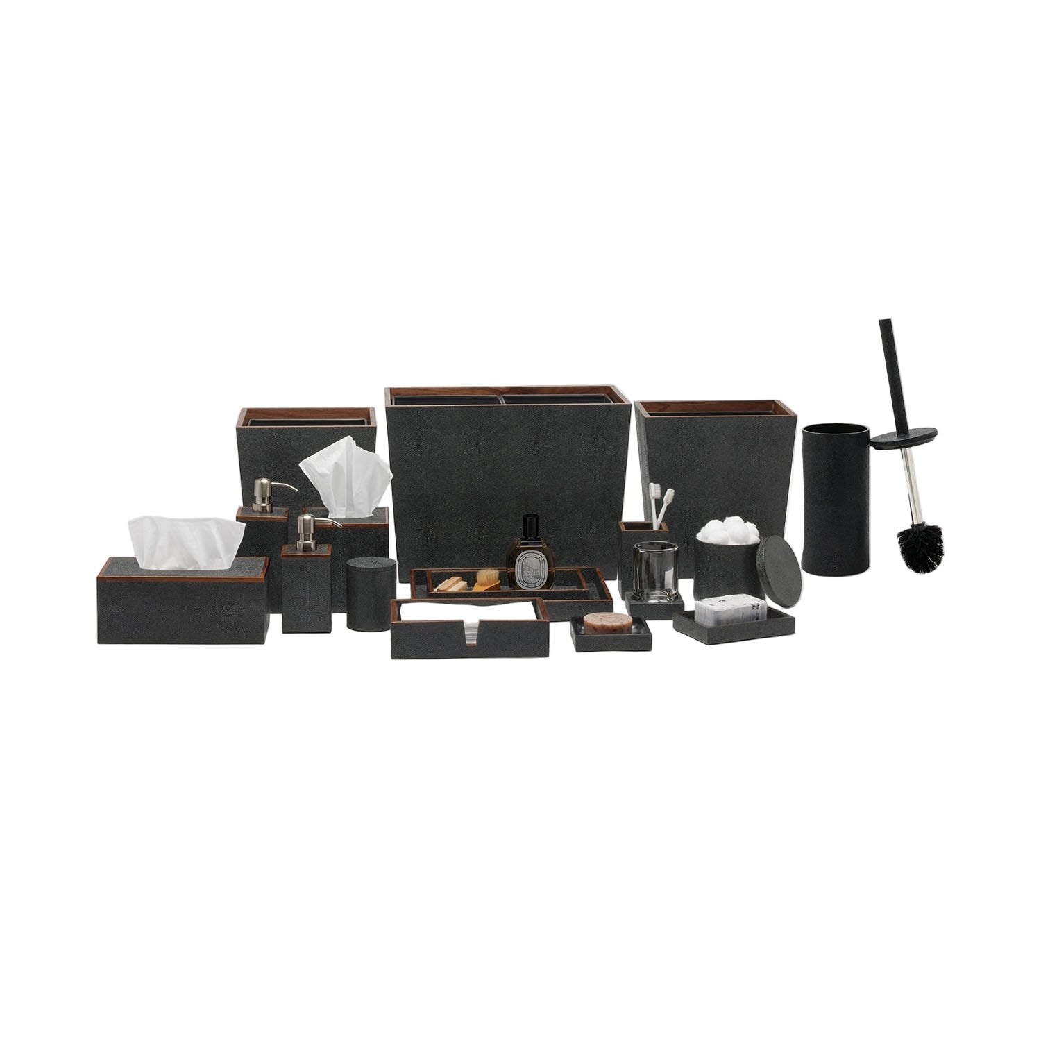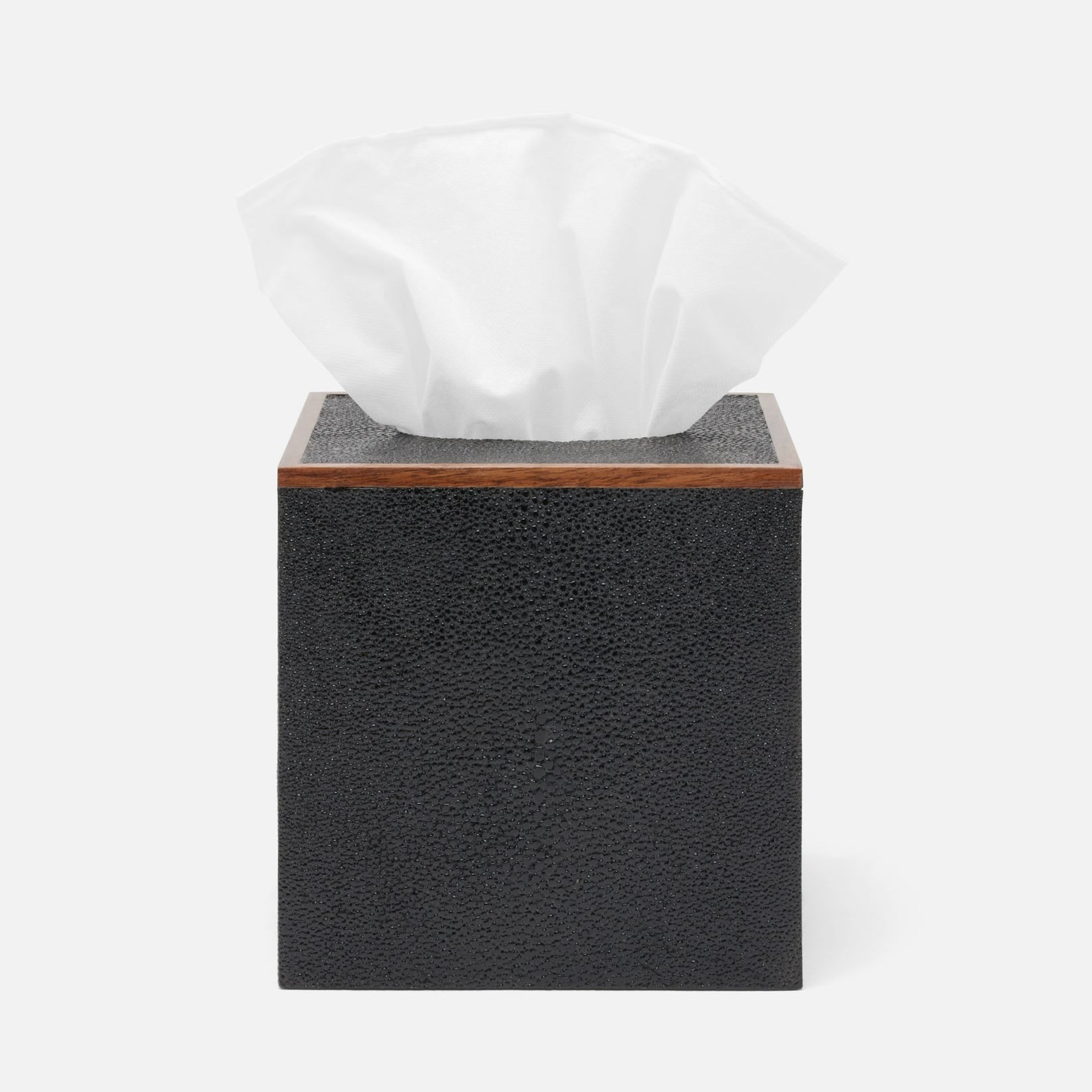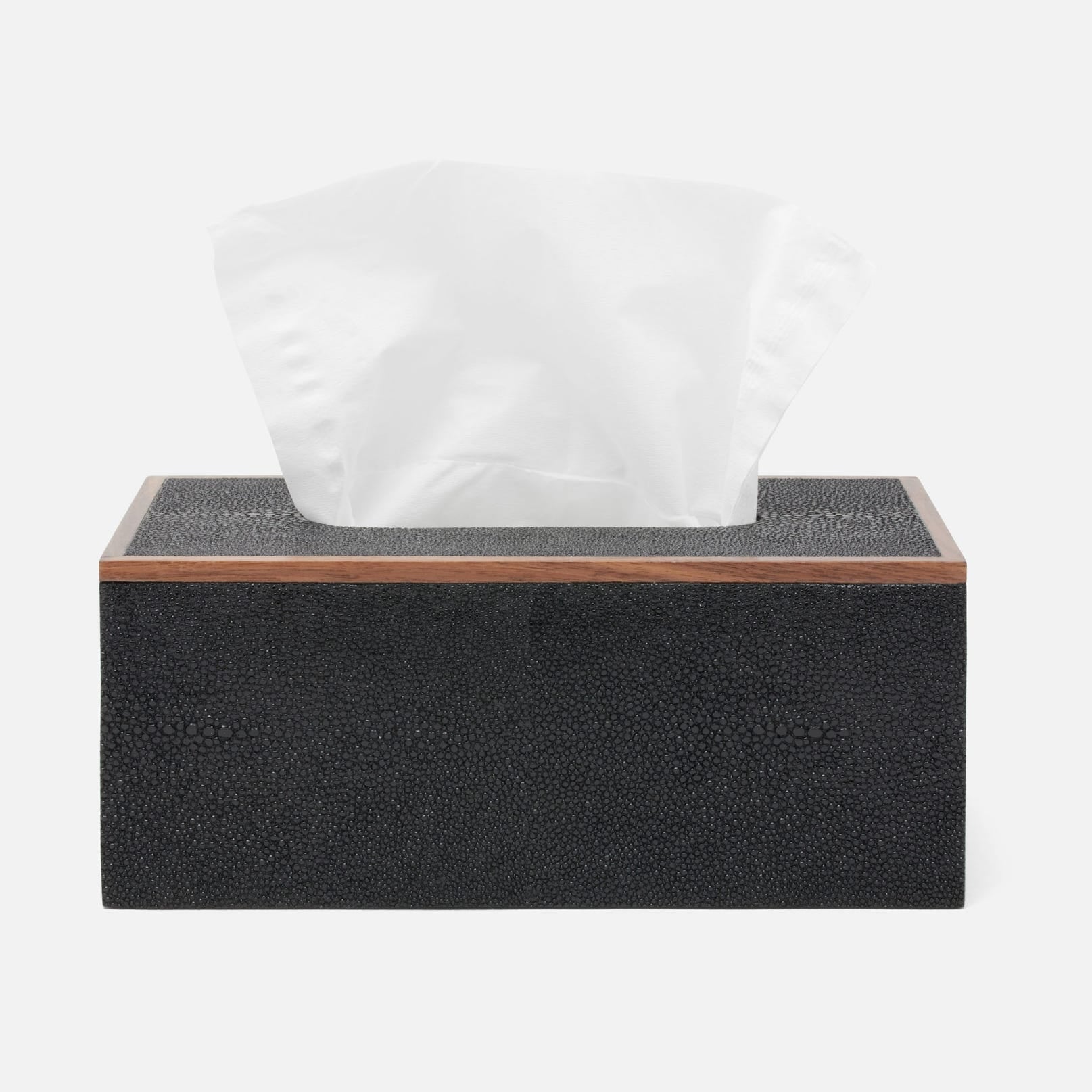 Every piece is crafted to highlight the natural eye pattern inspired by authentic shagreen, and topped with a veneer trim.