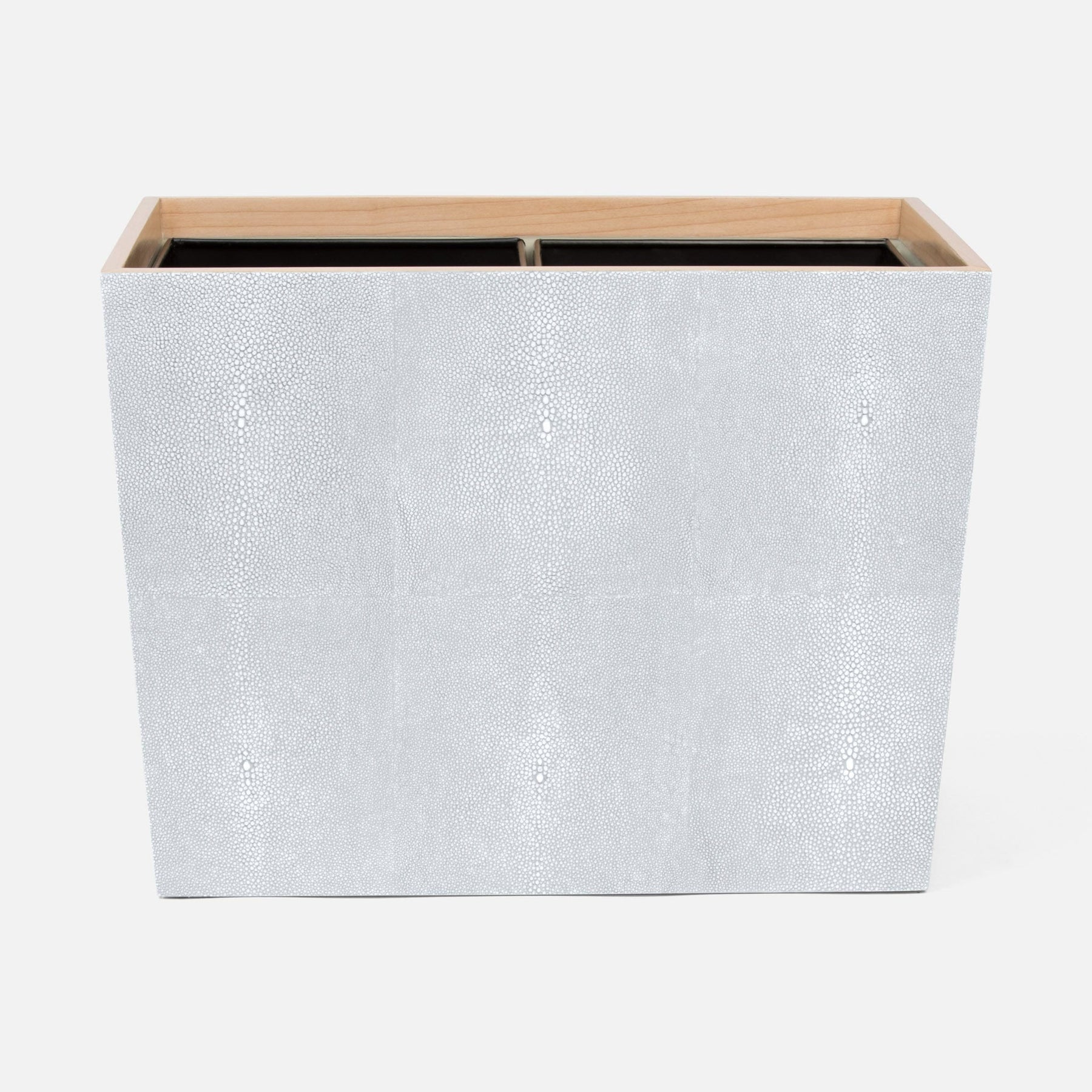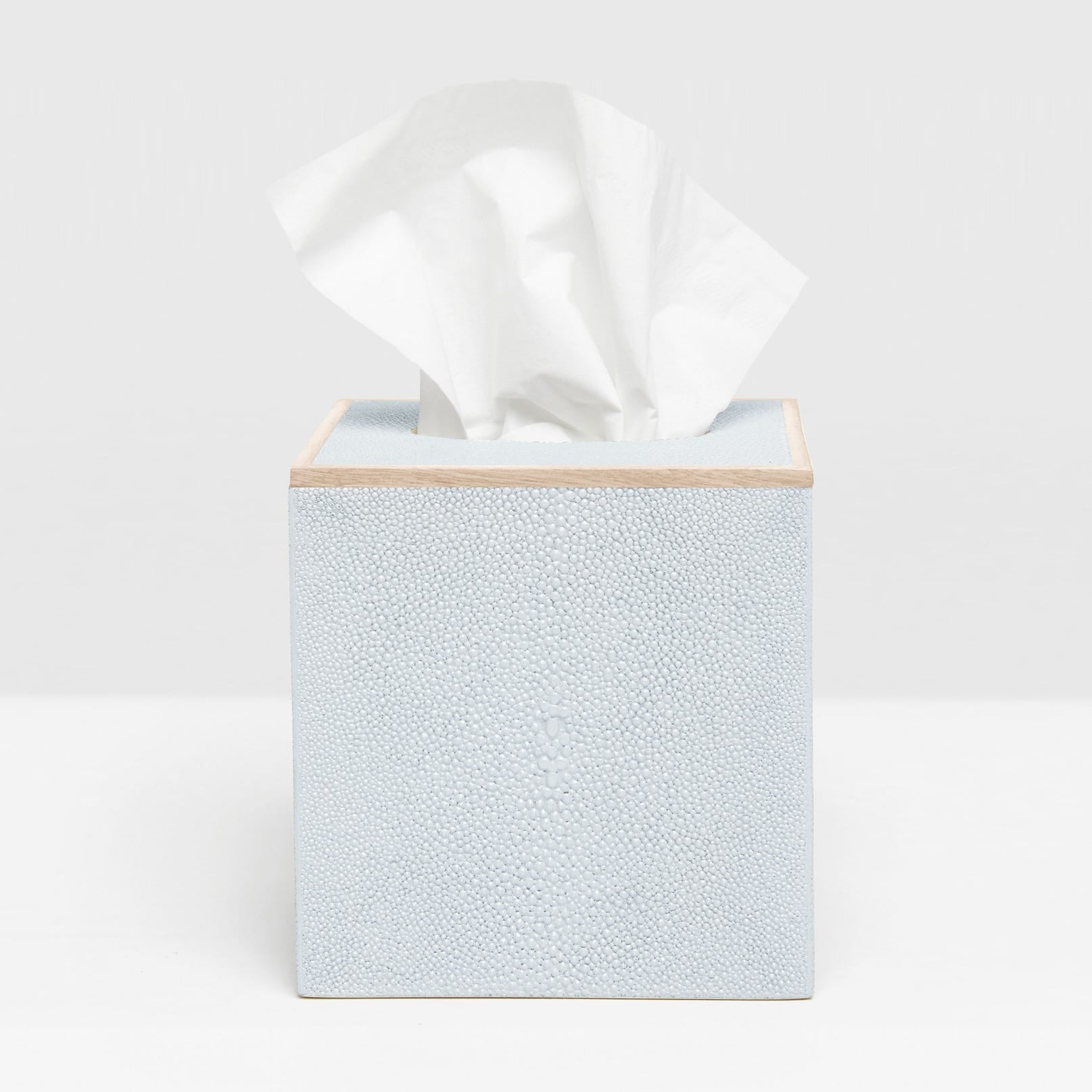 Every piece is crafted to highlight the natural eye pattern inspired by authentic shagreen, and topped with a veneer trim.