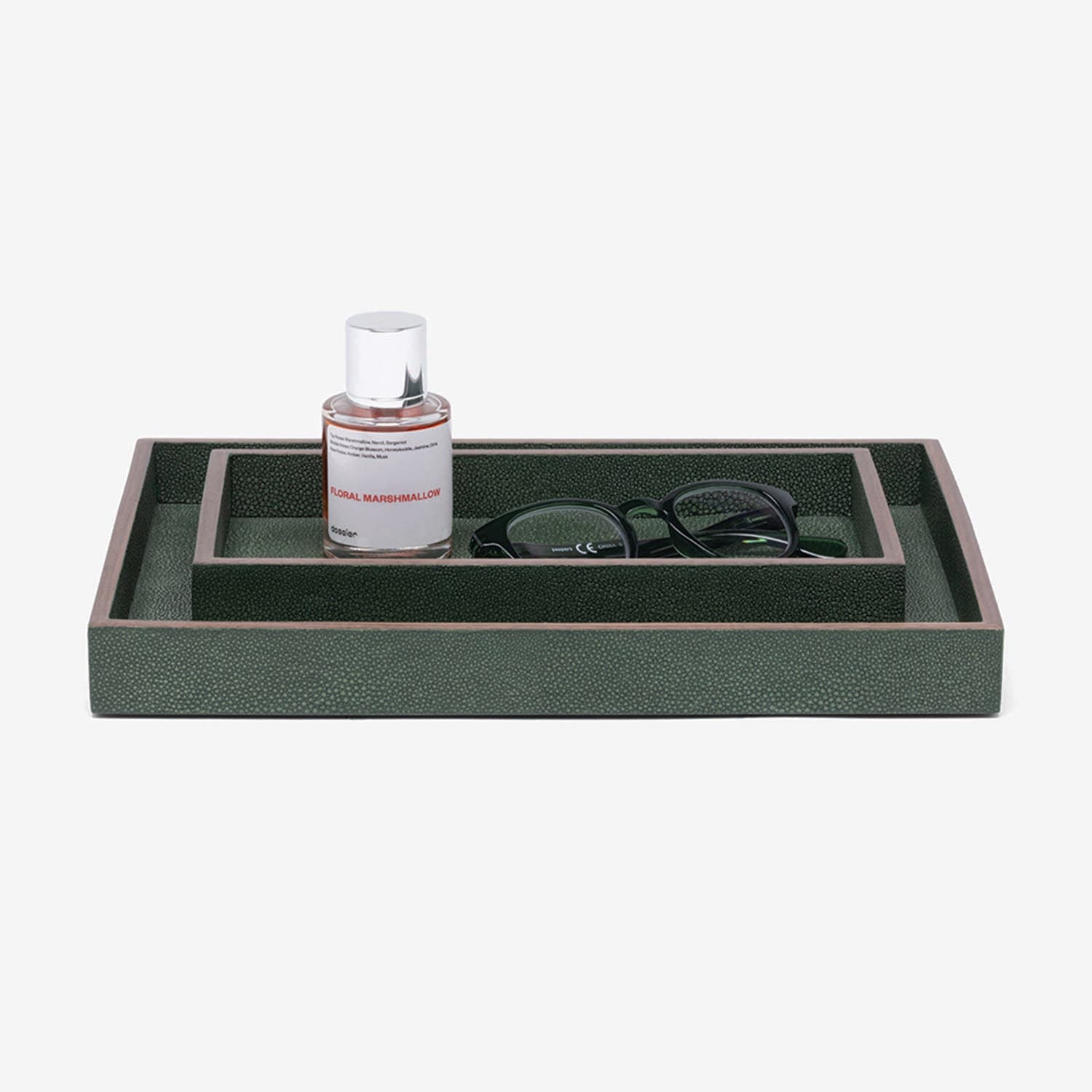 Every piece is crafted to highlight the natural eye pattern inspired by authentic shagreen, and topped with a veneer trim.
