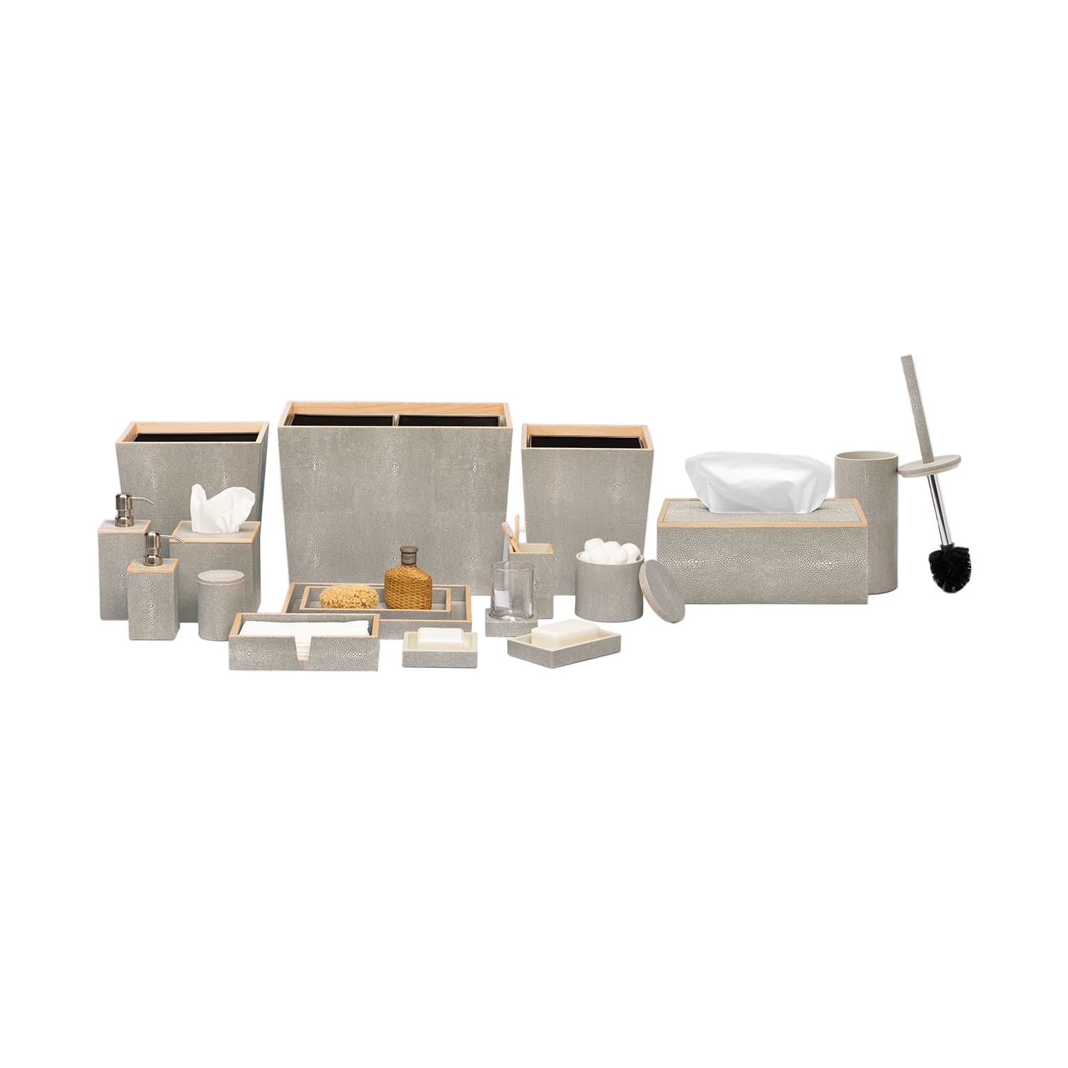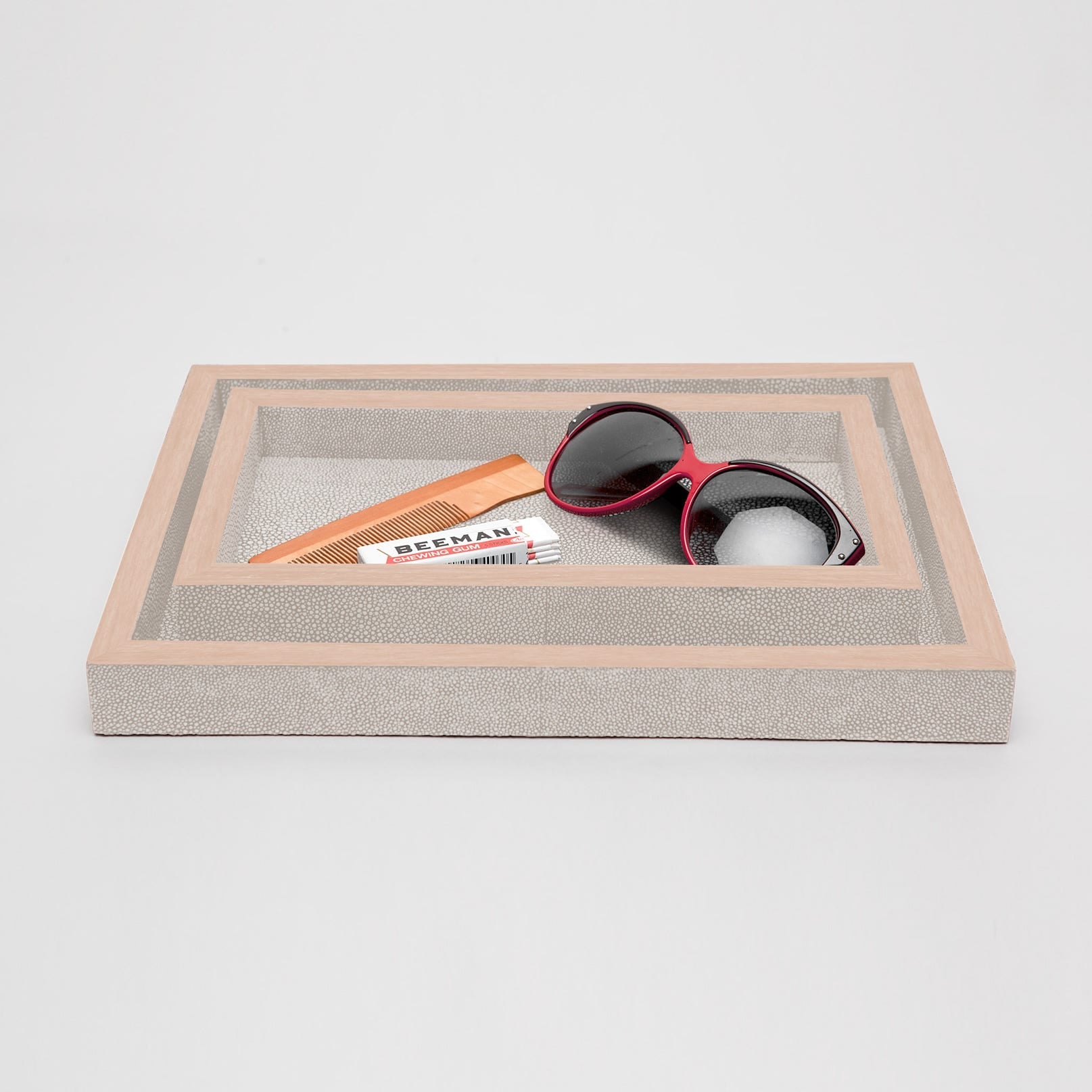 Every piece is crafted to highlight the natural eye pattern inspired by authentic shagreen, and topped with a veneer trim.