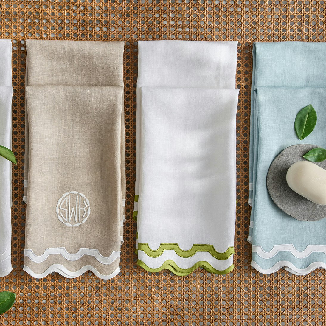 Inspired by the timeless elegance of Palm Beach design, these Mirasol guest towels showcase a striking arch trim in luxurious Nocturne sateen that evokes the sophisticated aesthetic of upscale boutique storefronts. A refined accent piece that brings understated luxury to any bathroom.