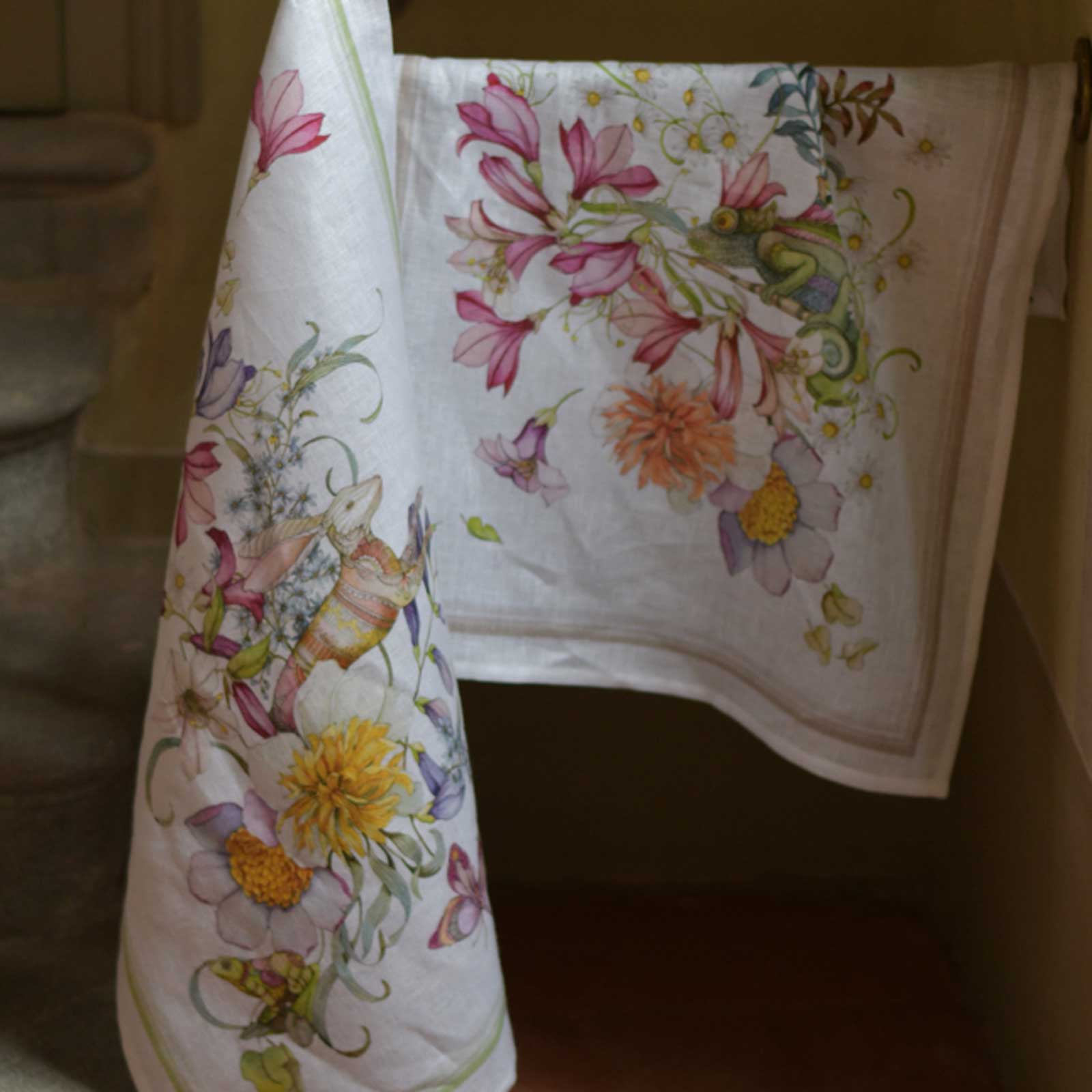 View more informationSemiramida Kitchen Towels by Tessitura Toscana Telerie The blue of the sea and the echo of the waves in a collection of precious shells.