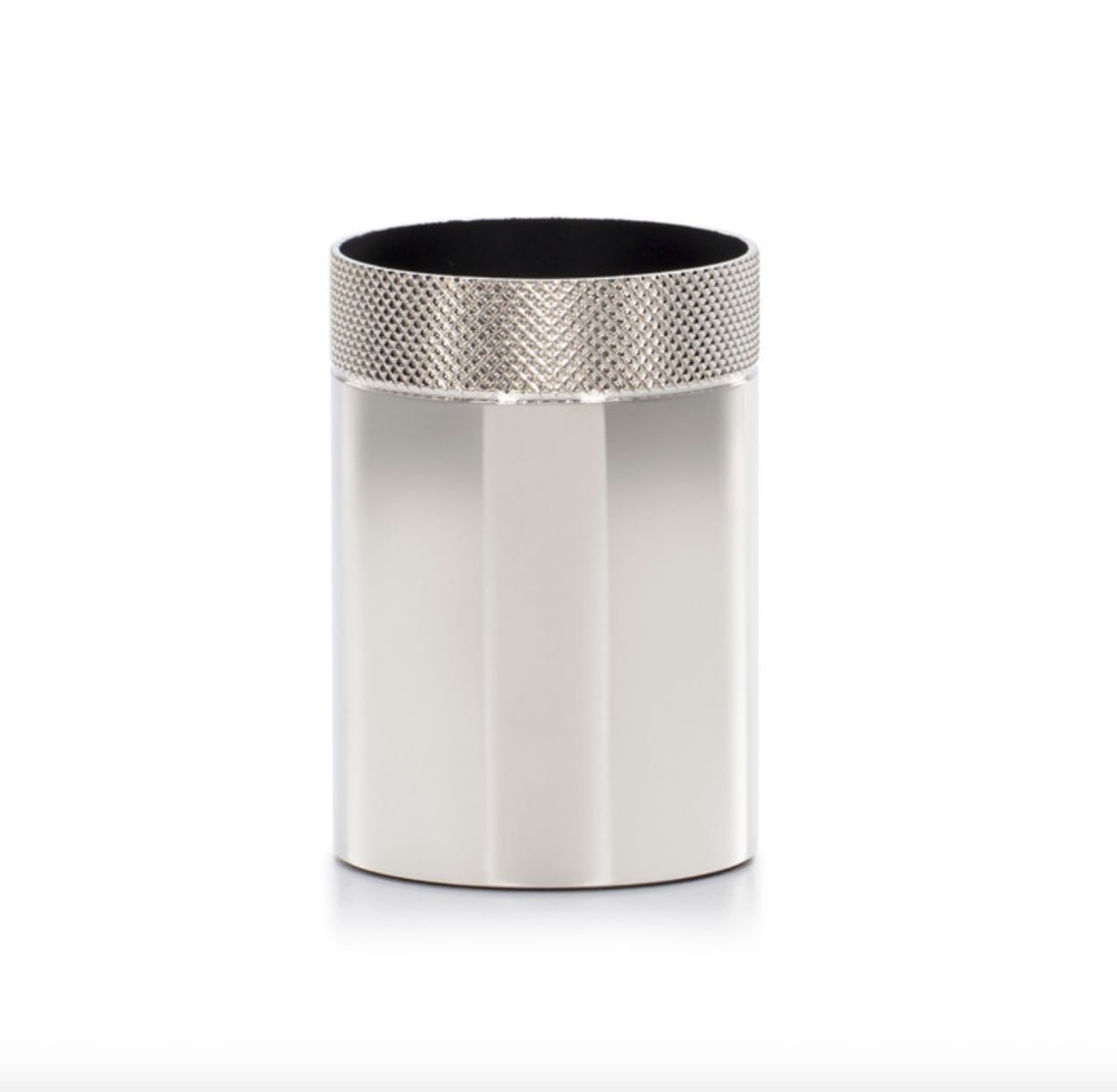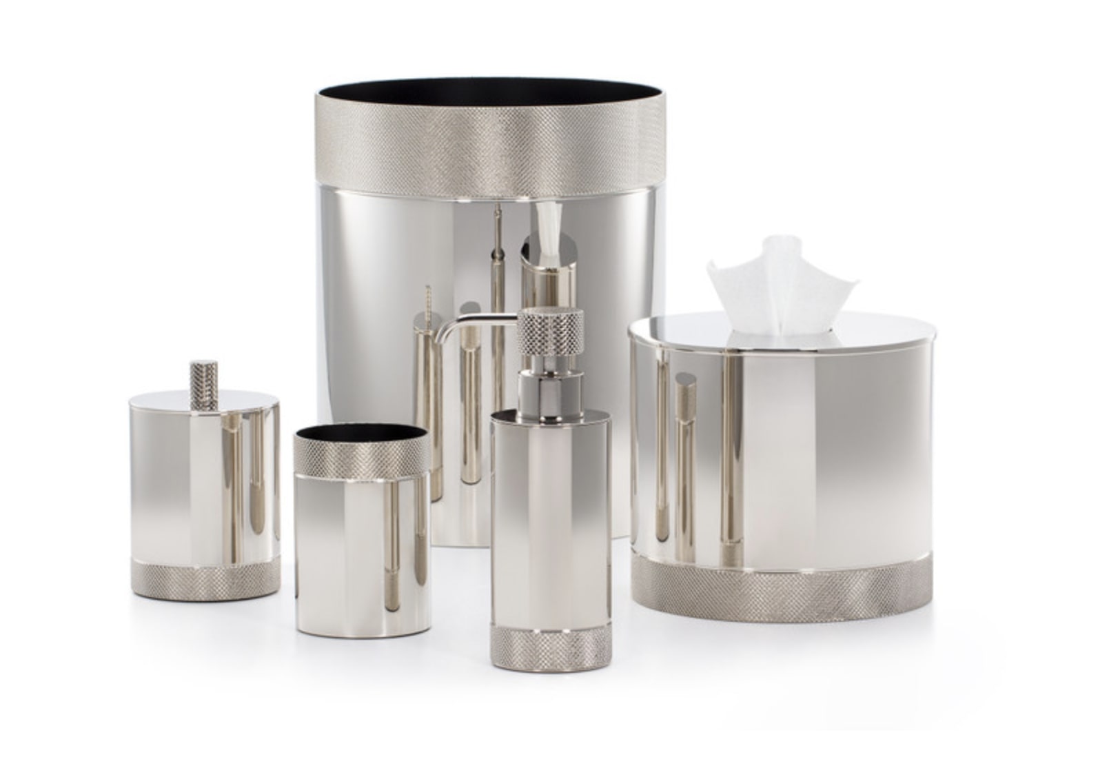 Crafted from solid brass and meticulously finished in lustrous chrome, this vanity set showcases Italian artisanal excellence. Each piece features hand-applied knurling that creates striking visual contrast against the mirror-polished surface, while the substantial weight of the solid construction speaks to its premium quality. The seamless cylindrical forms are precision-extruded and impeccably refined, delivering both functional elegance and tactile sophistication to your bathroom sanctuary.