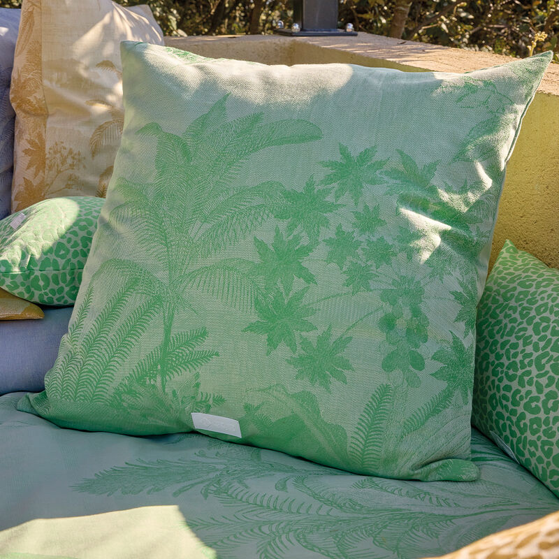 Palais Vénitien cotton cushion covers by Le Jacquard Francais take inspiration from the marble floors of Venice's famous palaces. The intricate designs of baroque arabesques and geometric motifs reflect the luxurious Italian style.