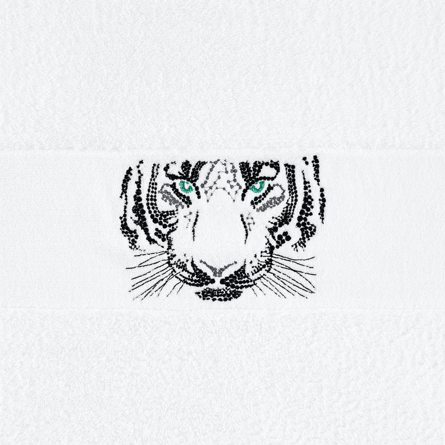 Tiger Embroidered Towels by Abyss & Habidecor. Embodying fierce beauty and quiet intensity, Tiger captures the essence of untamed power and unwavering focus.