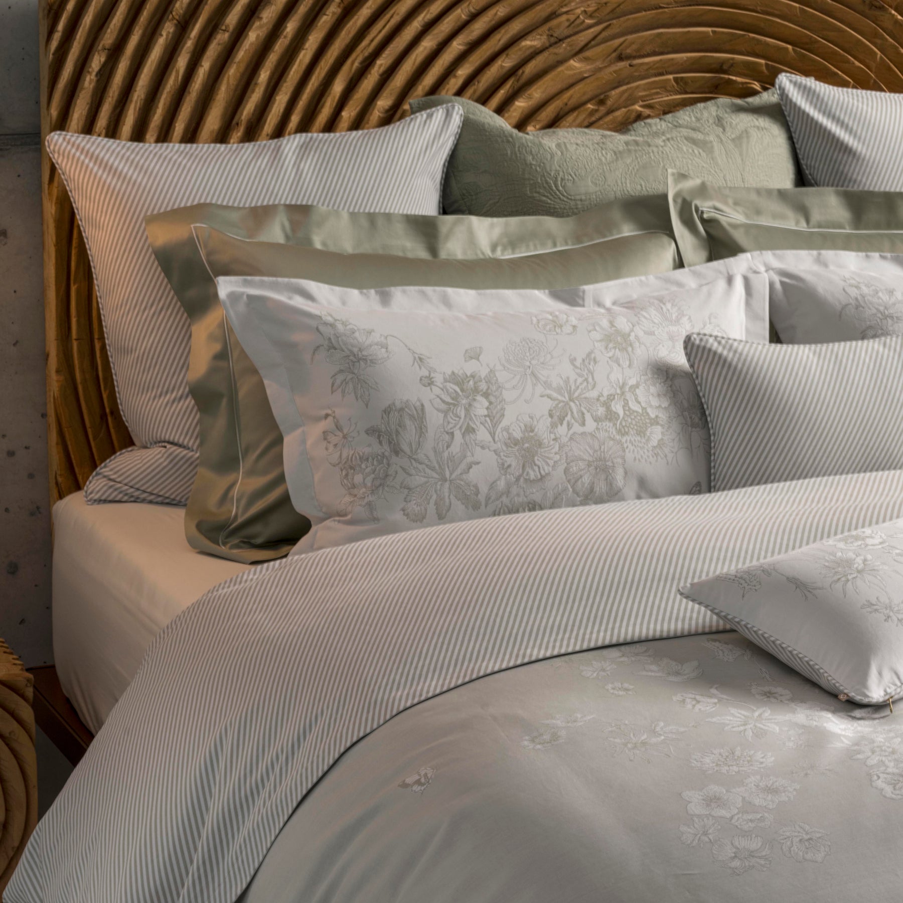 Elevate your bedroom with the refined Trianon Bed Linens by Celso de Lemos. Crafted with meticulous attention to detail, these linens offer a perfect blend of luxurious comfort and timeless style. The exquisite fabric enhances your sleeping experience, while the sophisticated design adds an understated elegance to your space. Ideal for those who appreciate quality and artistry in every detail.