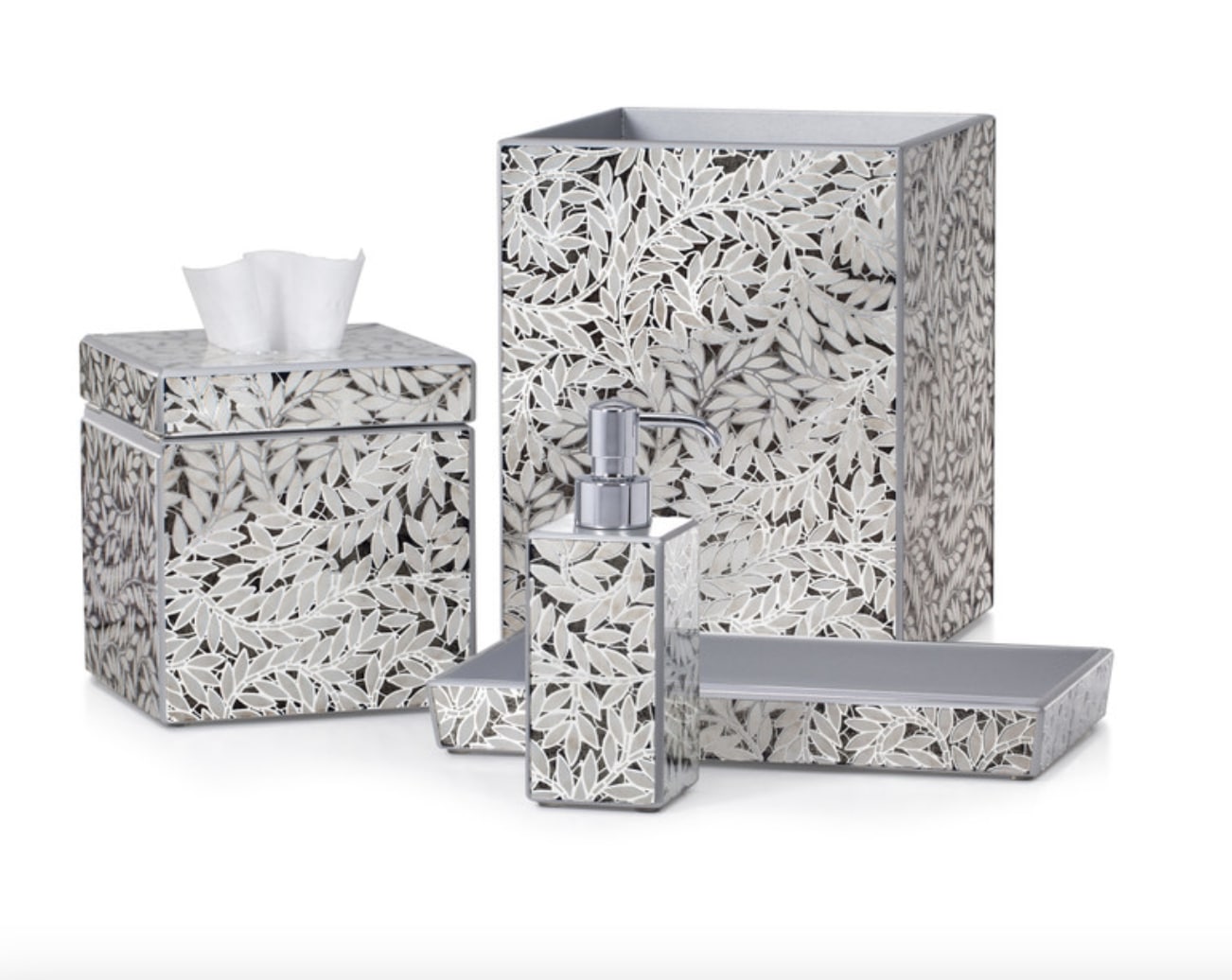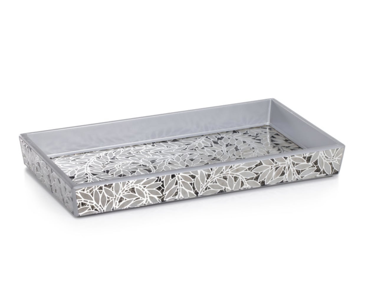 Crafted by skilled artisans in Peru, this vanity set showcases exquisite hand-painted mirrored panels set within refined silver-finished wood frames. Each piece features a distinctive artistic technique where portions of the mirror backing are selectively replaced with soft ivory and gray mottled tones, creating an elegant interplay of reflective and matte surfaces. The intricate design is permanently sealed beneath protective glass, ensuring lasting beauty and durability. A sophisticated addition to any bathroom sanctuary.