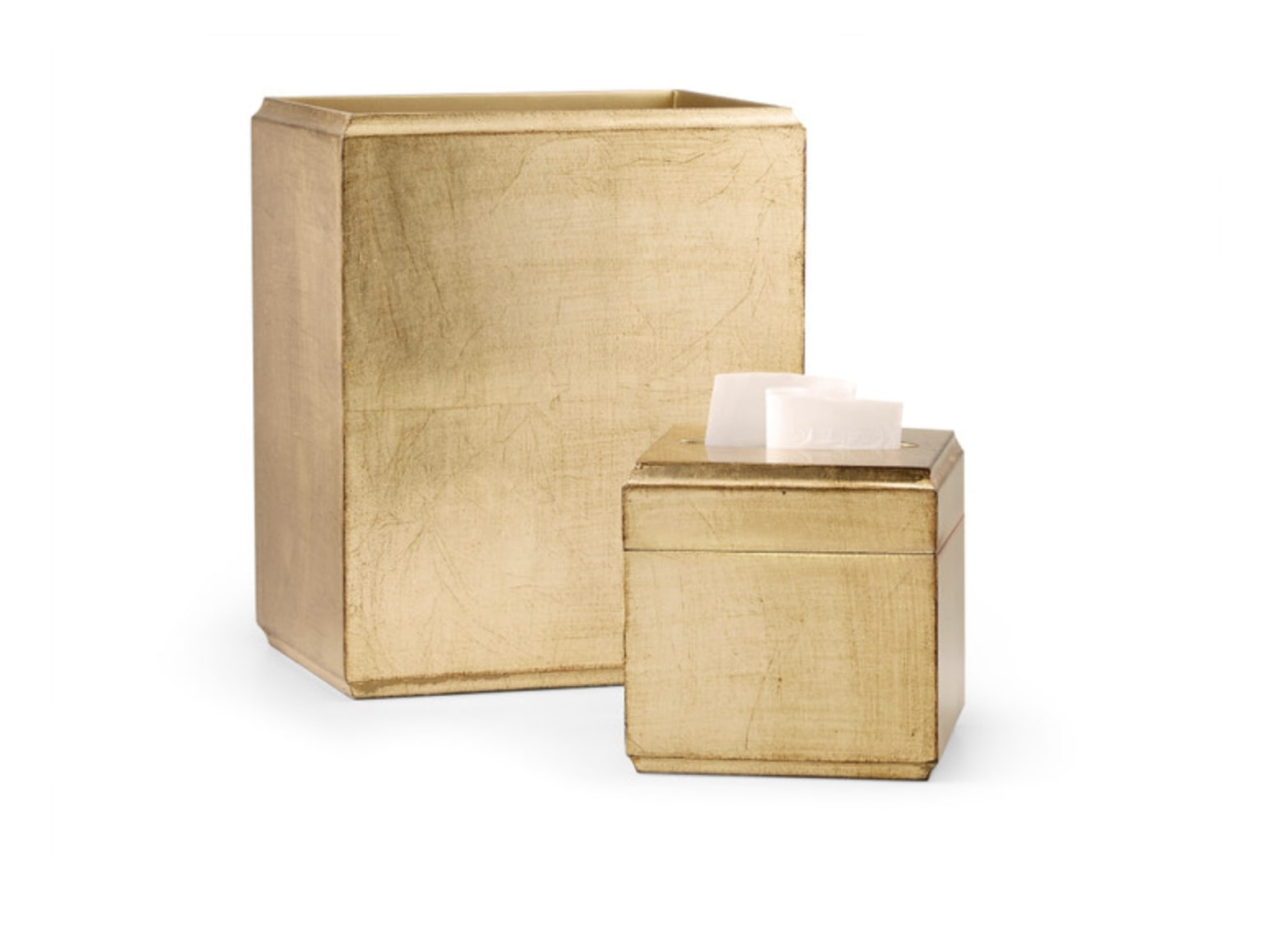 Discover timeless refinement with this exquisite two-piece bath collection from Labrazel's York Gold collection. Meticulously handcrafted in Florence, each item showcases authentic gold leaf detailing enhanced by a subtle antique patina. The coordinated waste basket and tissue dispenser feature a protective acrylic finish that preserves their lustrous appearance. The tissue box boasts a thoughtfully designed hinged lid for seamless functionality. An embodiment of Italian craftsmanship and understated luxury for the discerning home.