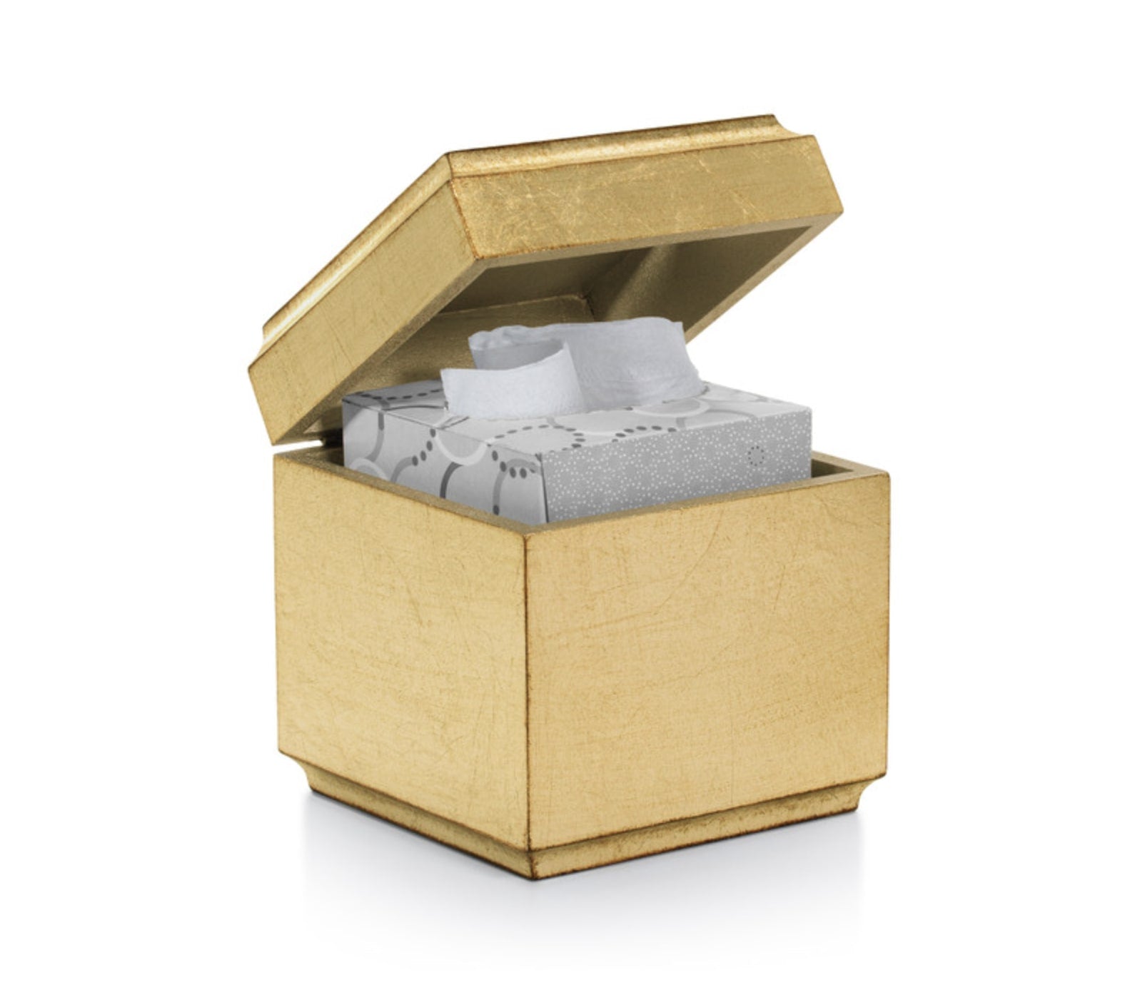 View more informationDiscover timeless refinement with this exquisite two-piece bath collection from Labrazel's York Gold collection. Meticulously handcrafted in Florence, each item showcases authentic gold leaf detailing enhanced by a subtle antique patina. The coordinated waste basket and tissue dispenser feature a protective acrylic finish that preserves their lustrous appearance. The tissue box boasts a thoughtfully designed hinged lid for seamless functionality. An embodiment of Italian craftsmanship and understated luxury for the discerning home.